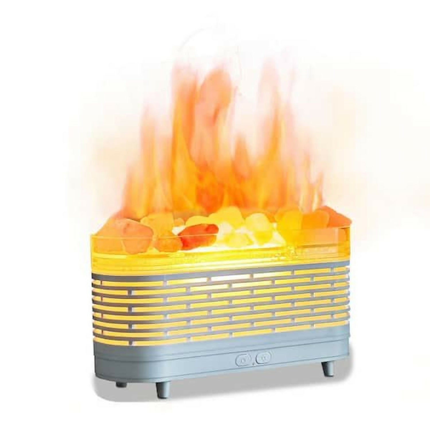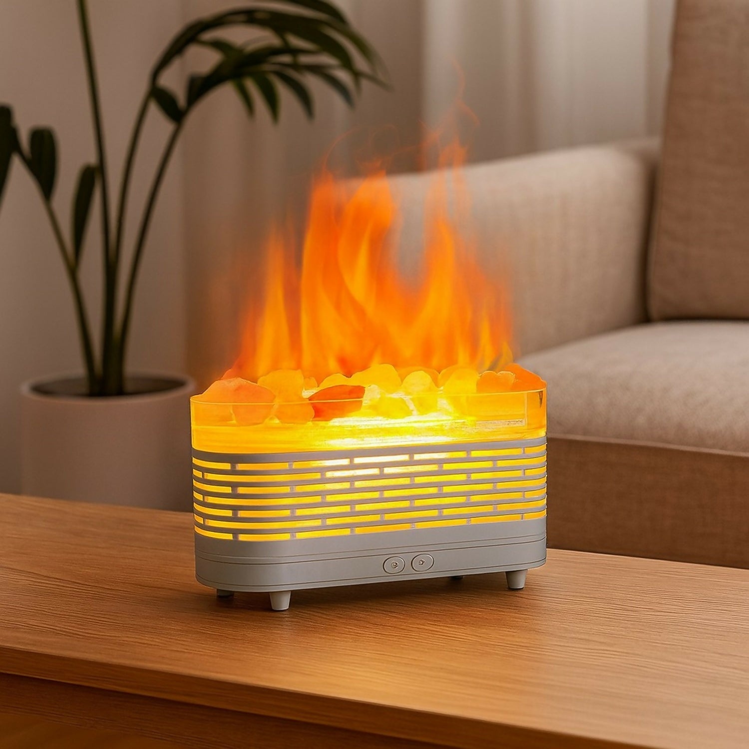 Create a warm, relaxing atmosphere with this LED Flame Effect Himalayan Salt Rock Lamp. Designed with realistic flame lighting and natural-look crystal rocks, it brings a cozy fireplace vibe to any room. The built-in LED system produces soft, soothing light, while the diffuser function gently releases fragrance mist to enhance your ambiance. Perfect for bedrooms, living rooms, home décor, yoga spaces and gifting.