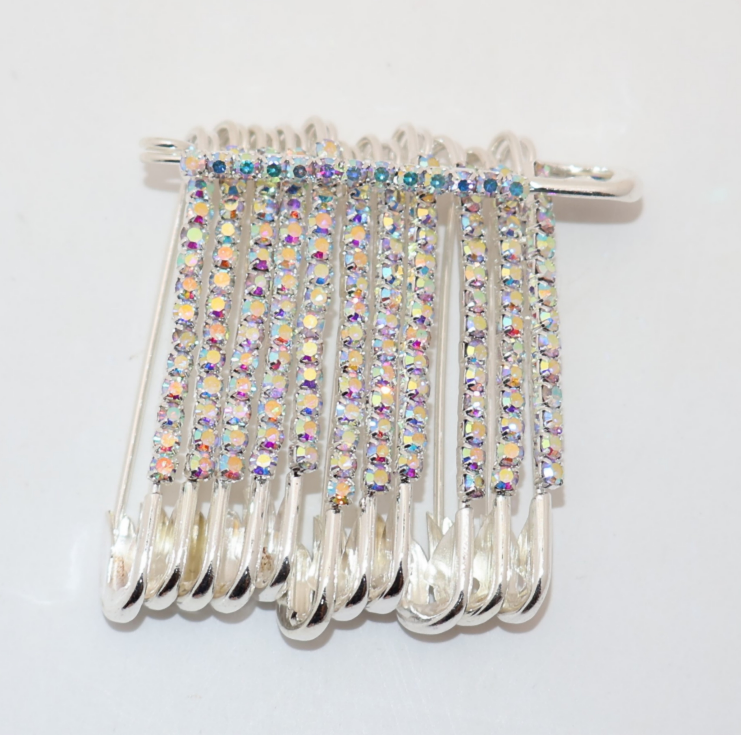 Dazzle up your traditional look with this Rainbow Rhinestone Silver Saree Pin Set. This elegant collection features 12 medium-sized safety pins, each measuring 4cm in length.