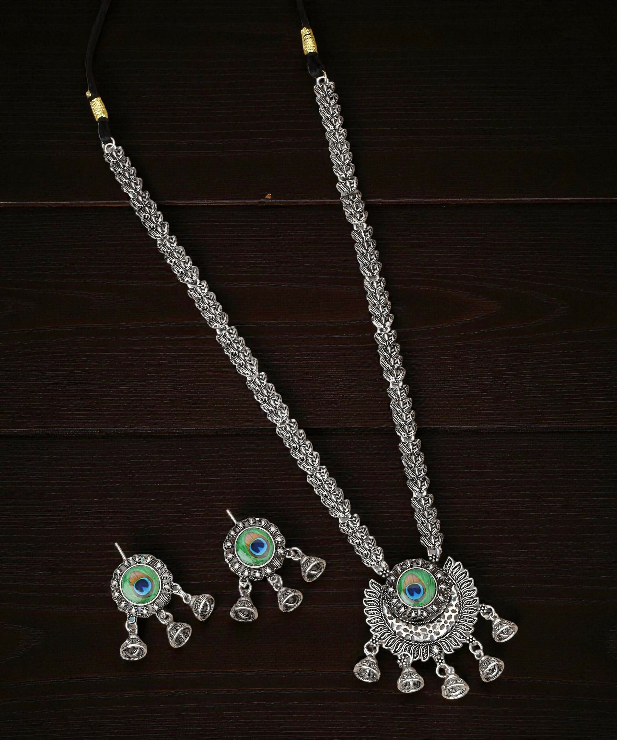 A striking necklace featuring large, rectangular black stones set in gold-tone metal. It is accented with delicate white faux pearl drops and includes matching earrings. Ideal for contemporary evening wear.