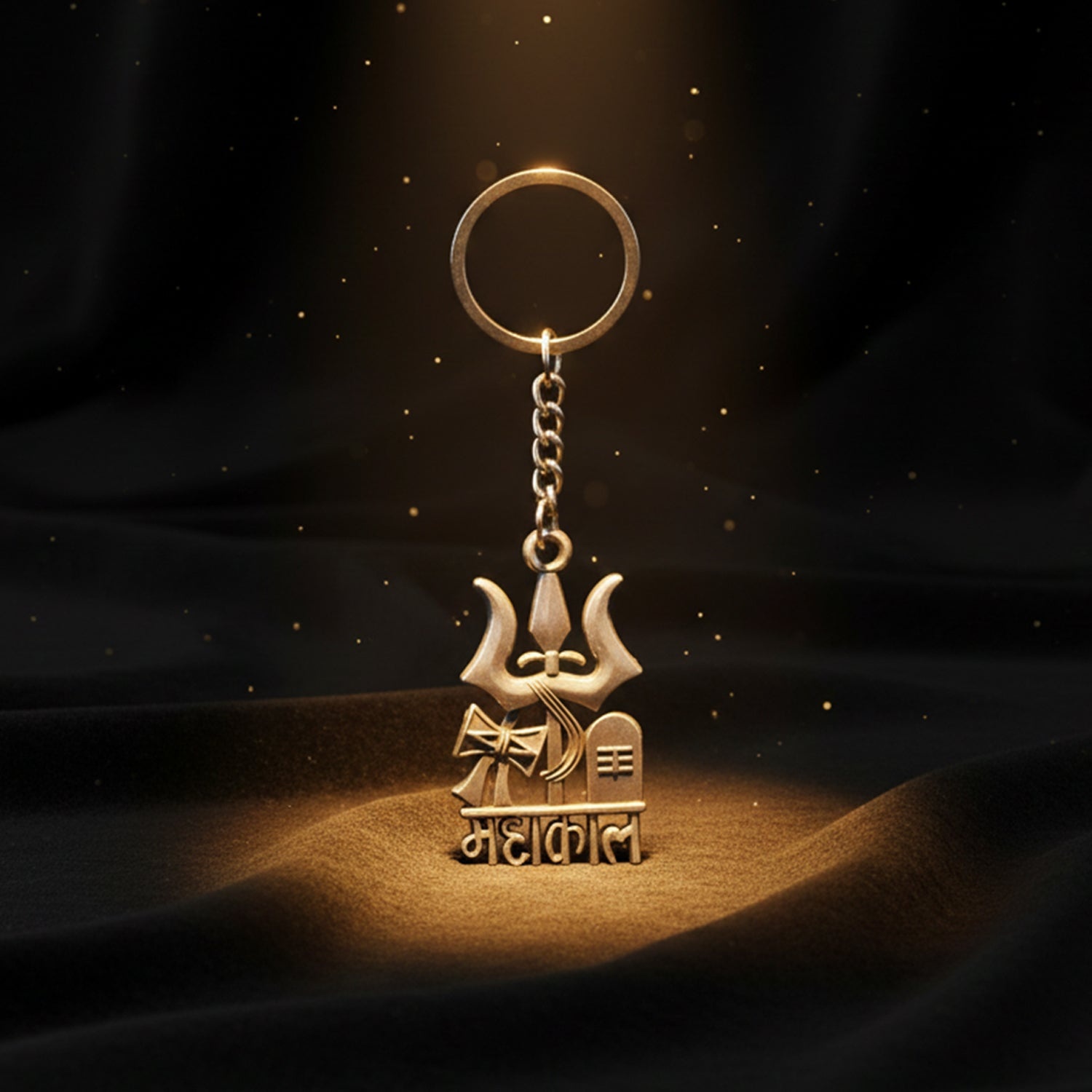 This beautifully designed metal keychain features the powerful combination of Trishul, Damru, and Shivling, symbolizing Lord Mahakal’s divine strength and protection. The charm is crafted in an antique black finish, giving it a bold and spiritual appearance. The detailed engravings and the “महाकाल” text add to its devotional appeal, making it a meaningful accessory for Shiva devotees. Built with a sturdy metal ring and durable chain, this keychain is perfect for securing car keys, bike keys, home keys, or office keys with daily reliability. Lightweight, stylish, and spiritually uplifting, it also makes a wonderful gift for festivals and religious occasions.