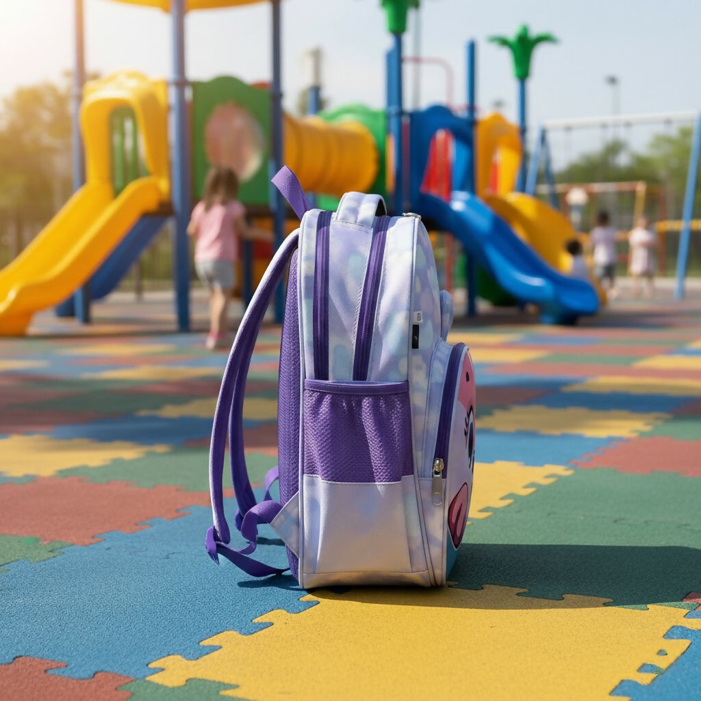 Make school days extra fun with this charming kids’ backpack featuring a cute pastel animal character on the front pocket and fluffy 3D ears for added personality. The main compartment offers plenty of space for books, lunch, and essentials, while the front zip pocket keeps small items organized. Designed in calming purple, pink, and blue tones with a whimsical cloud background, this lightweight and durable backpack is perfect for preschoolers and young students. Ideal for school, daycare, travel, and everyday adventures, it’s a delightful blend of practicality and playful style—sure to become your child’s favorite bag.