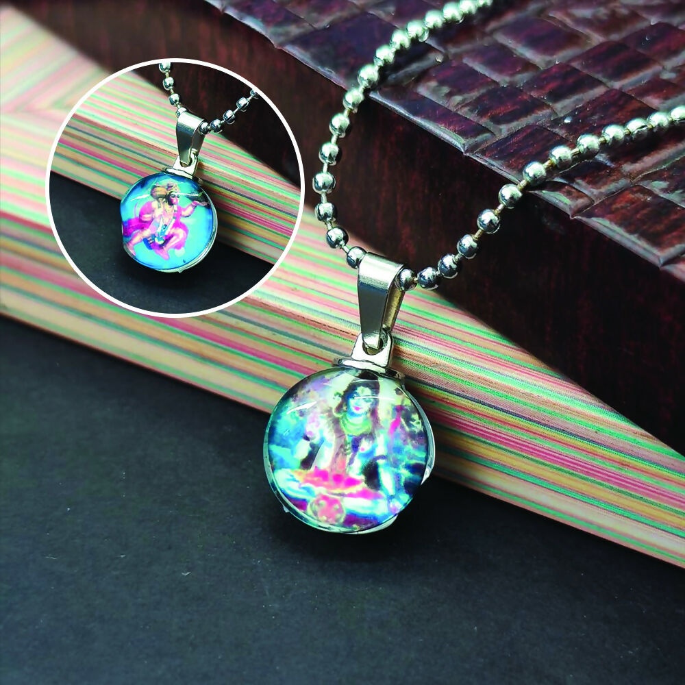 This pendant elegantly combines the powerful symbols of Hanuman and Lord Shiva Mahadev, embodying strength, protection, and spiritual wisdom. Crafted with attention to detail, it serves as a meaningful accessory for those seeking divine energy and guidance in daily life. Its design reflects devotion and reverence, making it an ideal piece for personal wear or as a thoughtful gift.