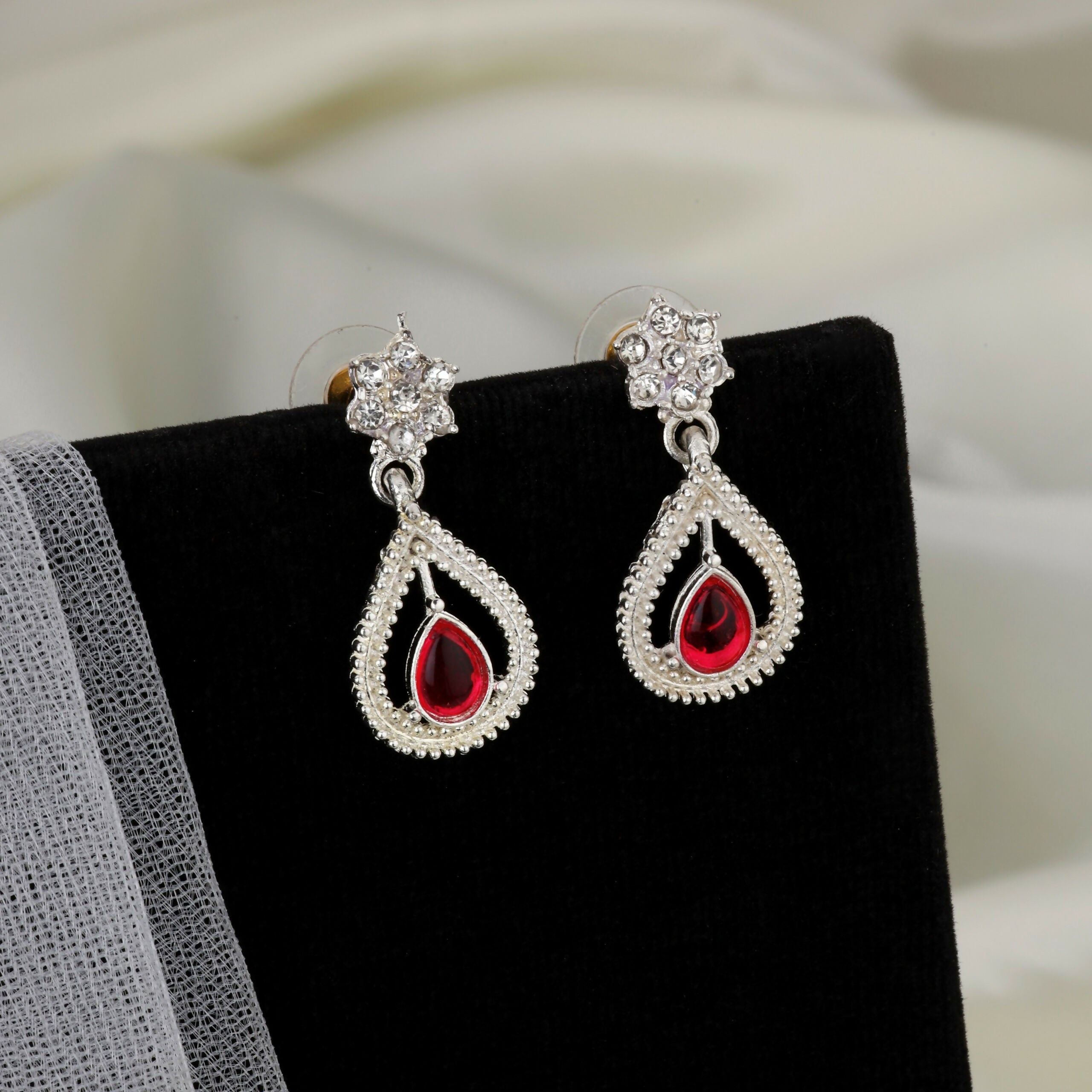 oxidized silver-toned necklace and matching drop earrings