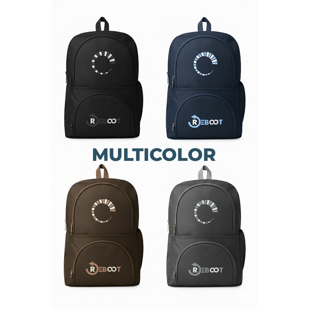 Featuring a modern tech-inspired “Reboot” logo, this bag combines a sleek minimalist look with practical functionality. while multiple zippered pockets organize your accessories, notebooks, and gadgets.