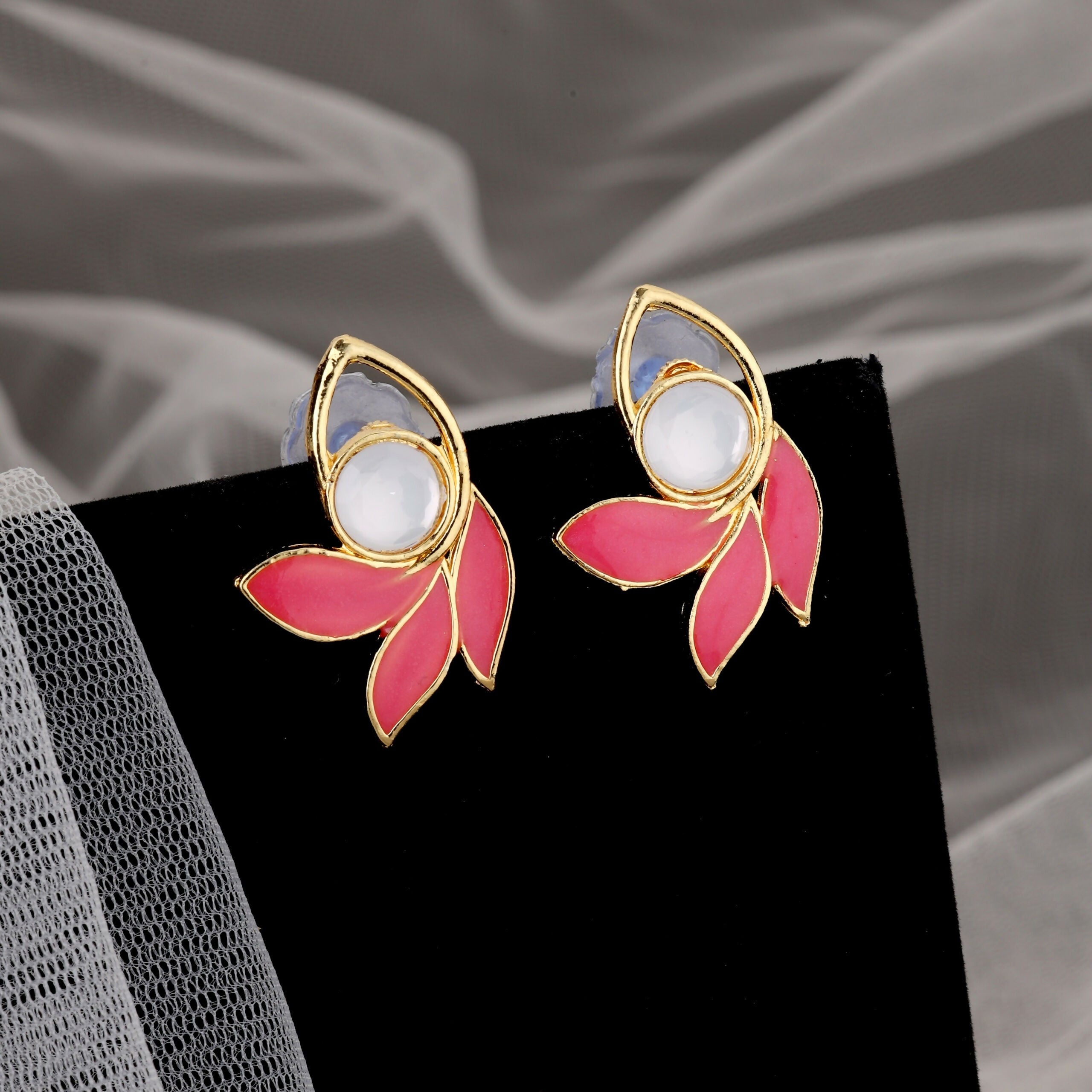 This beautiful jewellery set features a gold-toned necklace and matching drop earrings. The necklace is composed of alternating floral clusters and infinity-style oval links, all intricately studded with brilliant American Diamonds (AD stones). The design culminates in a sparkling, open-work teardrop pendant at the center. The matching earrings perfectly echo the pendant's teardrop shape. This set is a modern and glamorous choice for weddings, anniversaries, and evening parties.