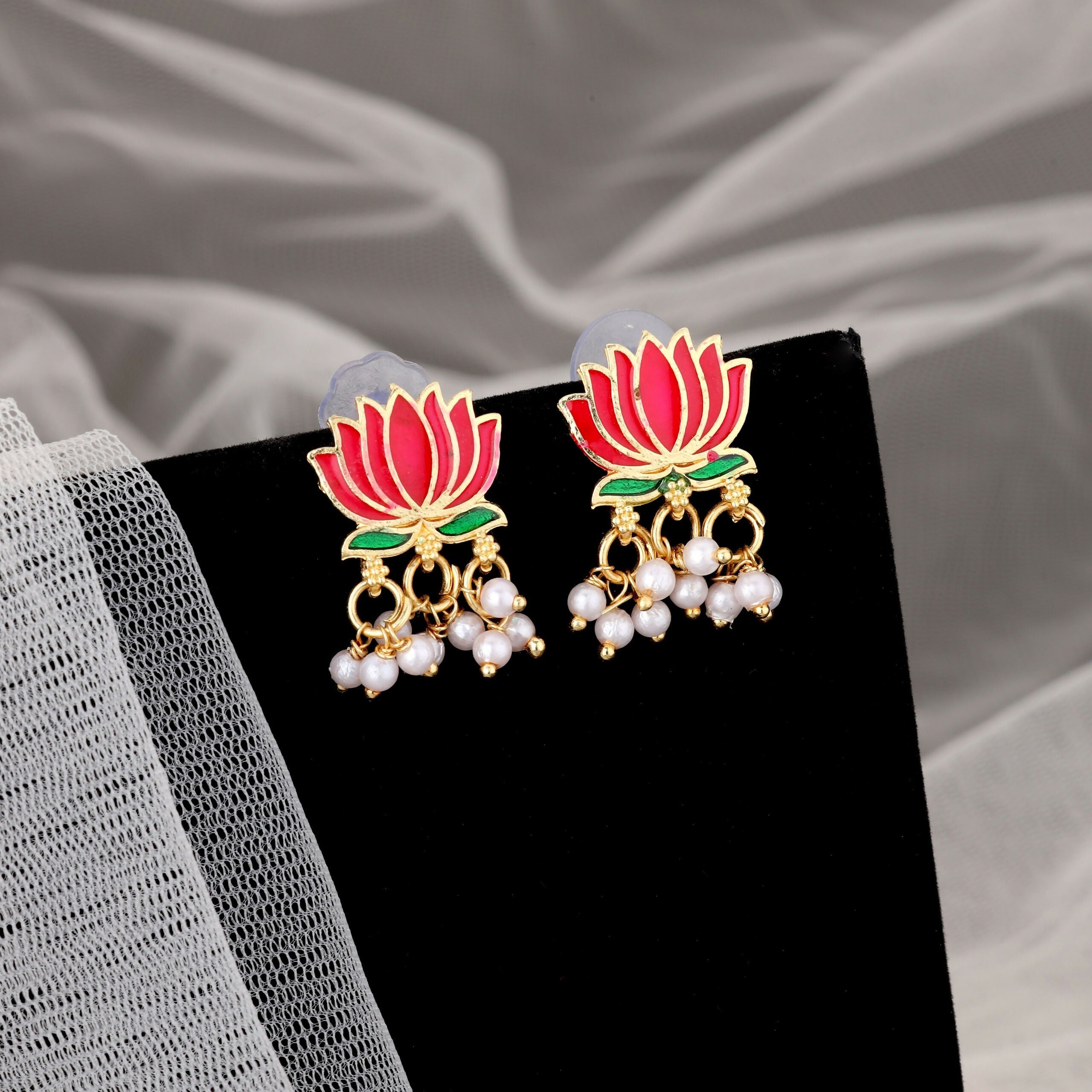 This captivating set features a gold-toned necklace and matching drop earrings with a sophisticated vine and scroll motif. The flowing links are accented with clear mina work and rich emerald green marquise-cut stones. The necklace culminates in a clustered teardrop pendant, creating an elegant design for formal ethnic wear.