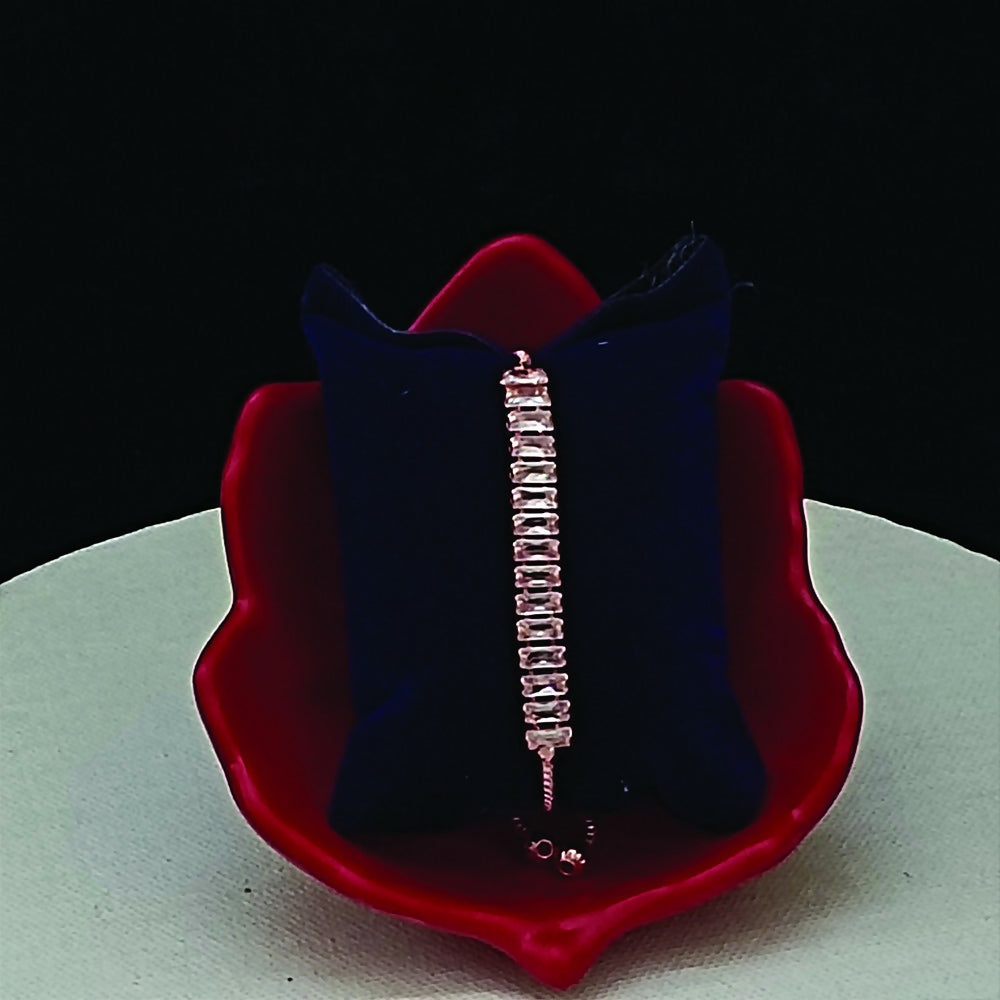 This adjustable bracelet features radiant Austrian stones set in a rose gold plated band, combining elegance with versatility. The adjustable design ensures a comfortable fit for all wrist sizes, while the rose gold plating offers a warm, durable finish resistant to tarnish. Expertly crafted, this bracelet provides a refined accessory that enhances any ensemble with timeless sophistication and lasting quality.