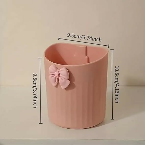 ESIGN FEATURES: Elegant cylindrical pen/brush holder with decorative bow accent, available in pink and cream colours, featuring vertical ribbed texture pattern