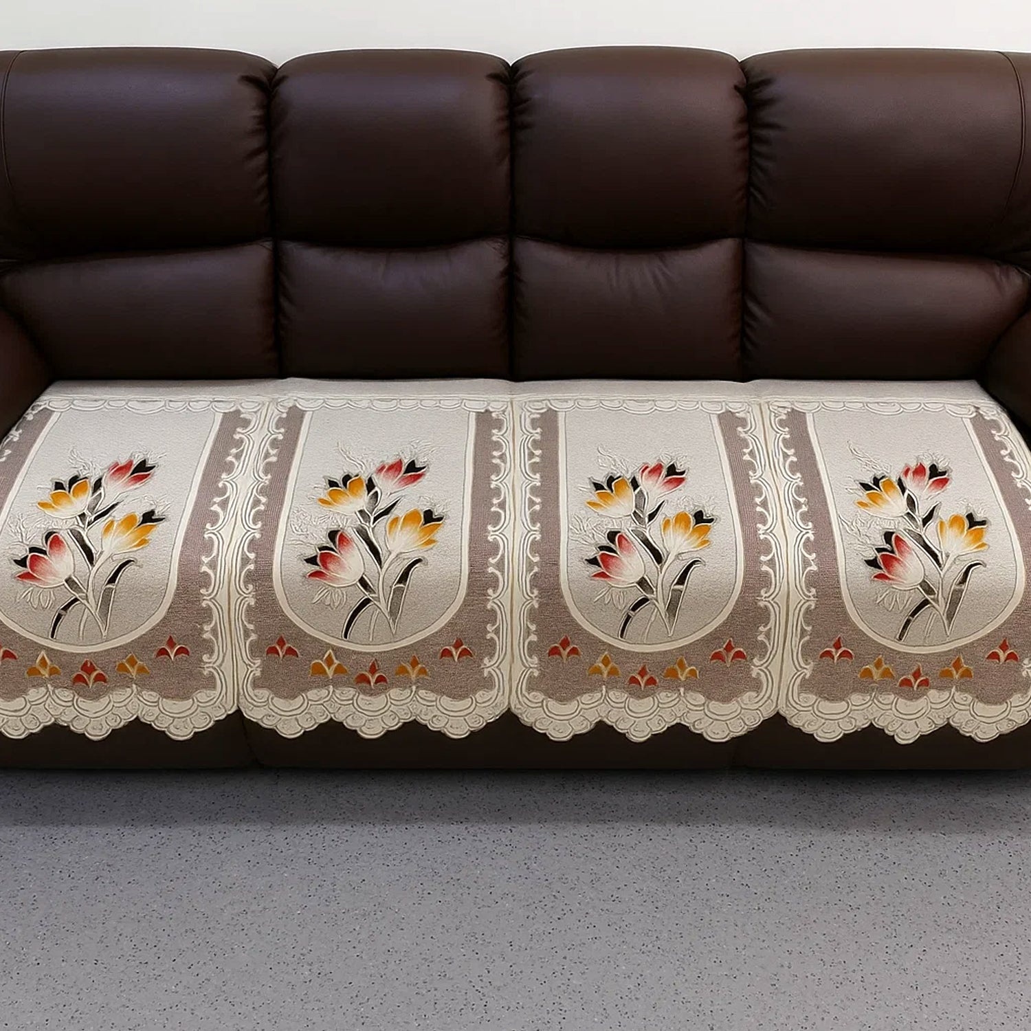 embossed floral sofa cover runner protector, anti-slip washable sofa runner, dust spill guard for couch, living room décor sofa seat runner, textured floral couch seat protector,home furnishing sofa seat guard, fabric sofa runner for living room, premium home textile sofa runner