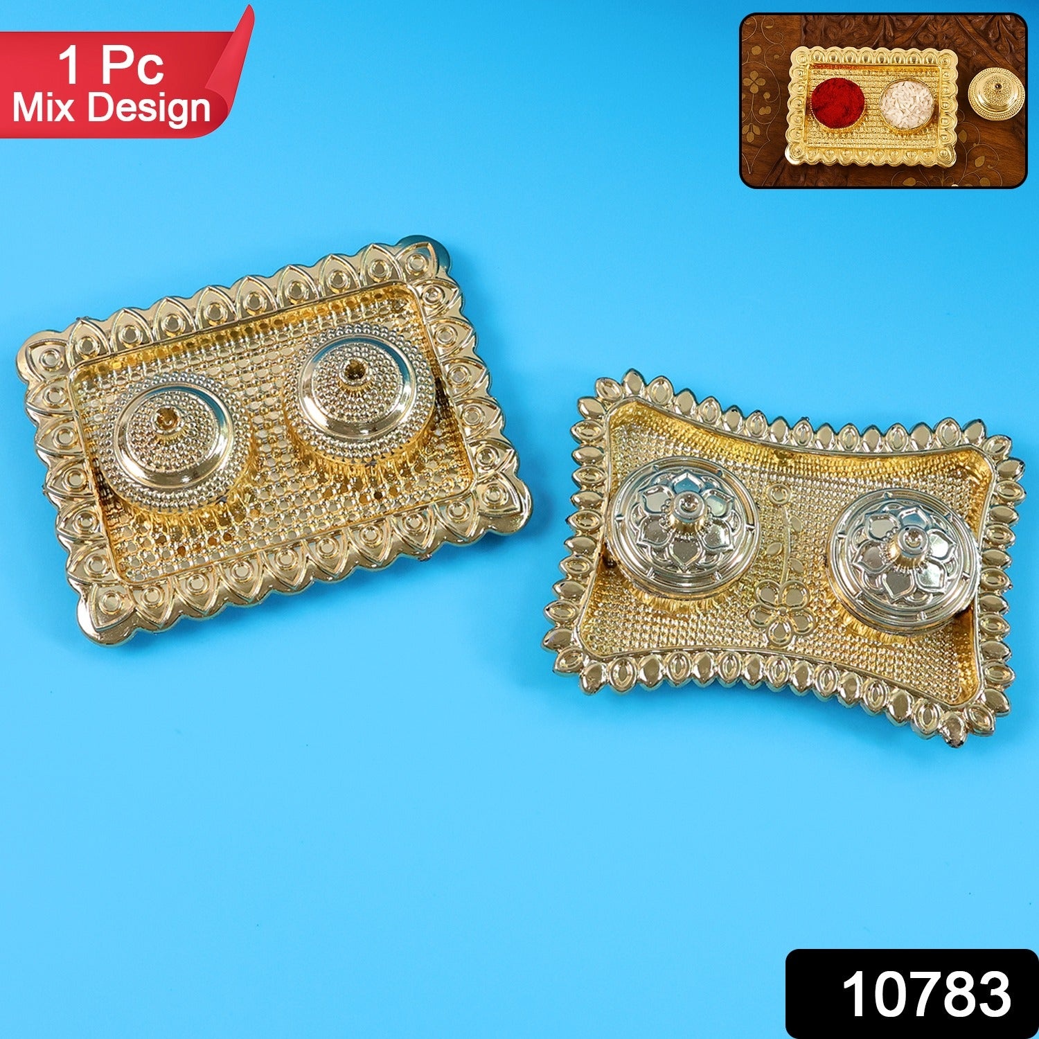 Components: 1 plate + 2 lidded kumkum/roli holders (fixed set)