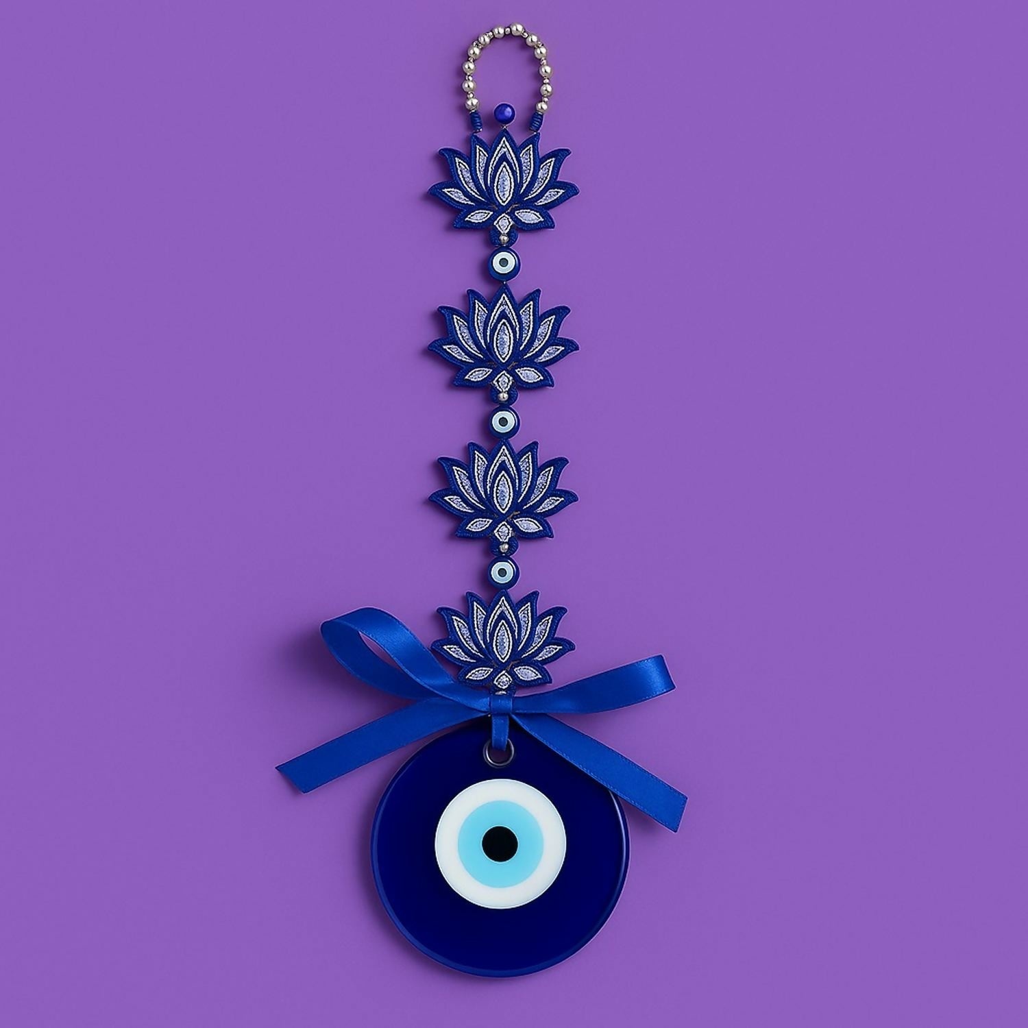 Evil Eye Wall Hanging with Blue Lotus & Om Nazar Battu for Home Office Car Decor