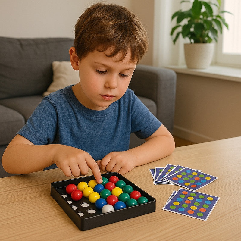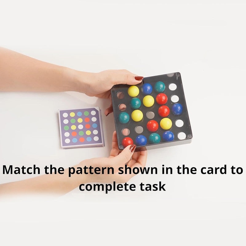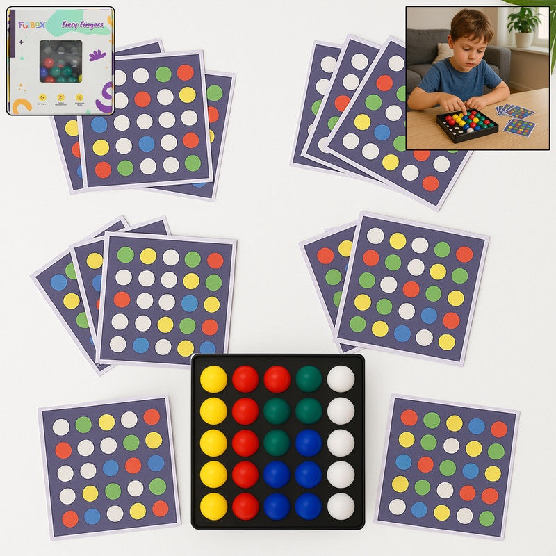 The Fiery Fingers Puzzle Game is a colorful and interactive brain teaser designed to improve childrenÕs focus, hand-eye coordination, and problem-solving skills. Players must quickly arrange the colored balls on the board to match the patterns shown on the challenge cards. This engaging activity blends fun with learning, making it perfect for developing cognitive abilities while keeping kids entertained. Its compact design makes it suitable for travel, classrooms, and family playtime.