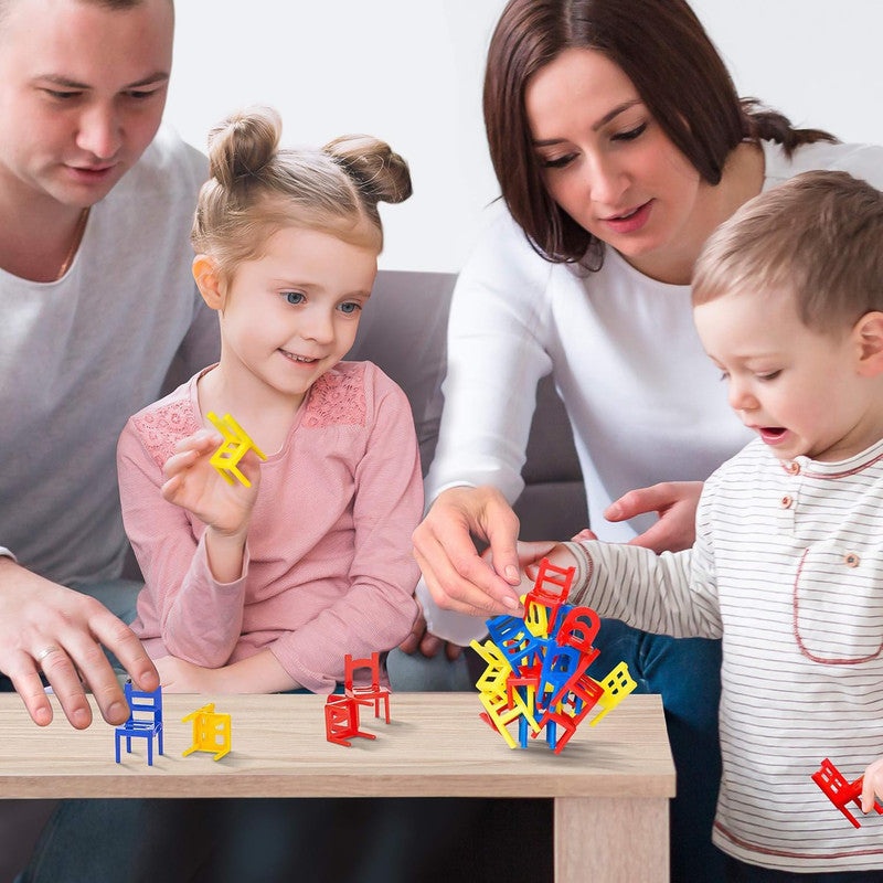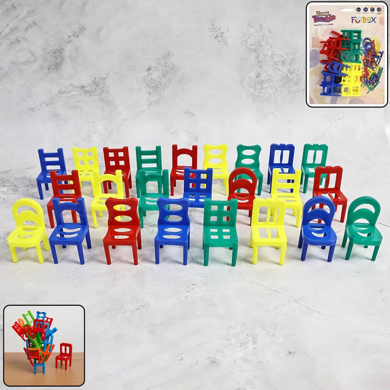 This colorful mini chair stacking game is an exciting balance puzzle that challenges players to test their focus, patience, and creativity. The set comes with multiple brightly colored plastic chairs that can be stacked in different ways to create unique towers. Perfect for family game nights, birthday parties, and group activities, this fun stacking toy provides endless entertainment while improving concentration and handÐeye coordination. Lightweight and easy to carry, itÕs suitable for kids and adults alike, making it a must-have addition to any toy collection.