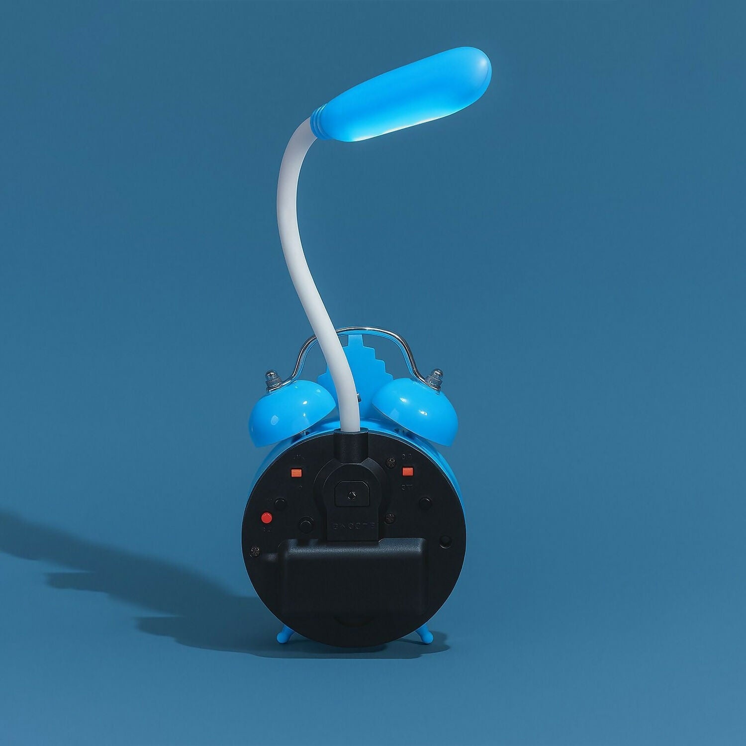 Kids Cartoon Blue Alarm Clock with LED Reading Lamp | Cute Rabbit Design, Dual Bell Analog Table Clock with Night Light, Adjustable LED Arm Lamp for Kids Bedroom, Study Table & Birthday Gift
