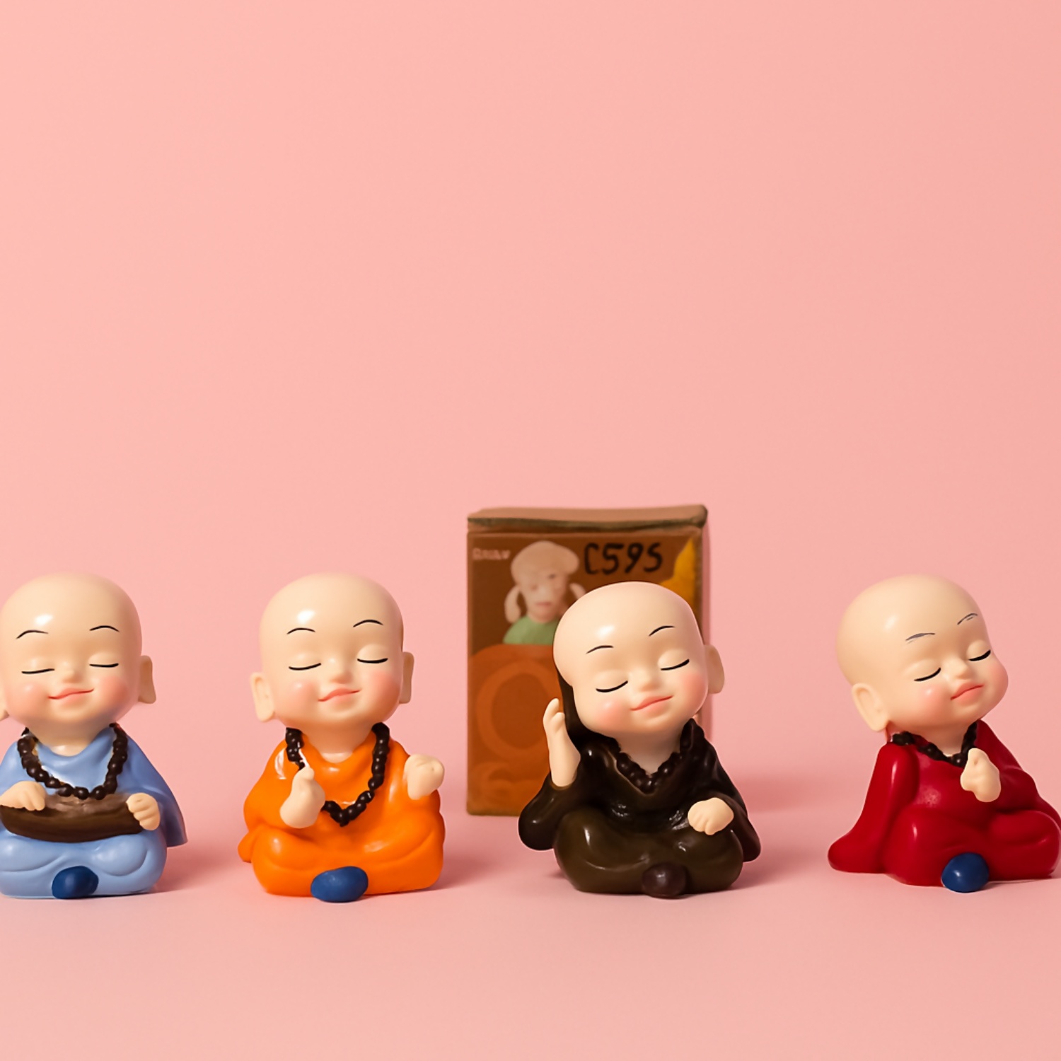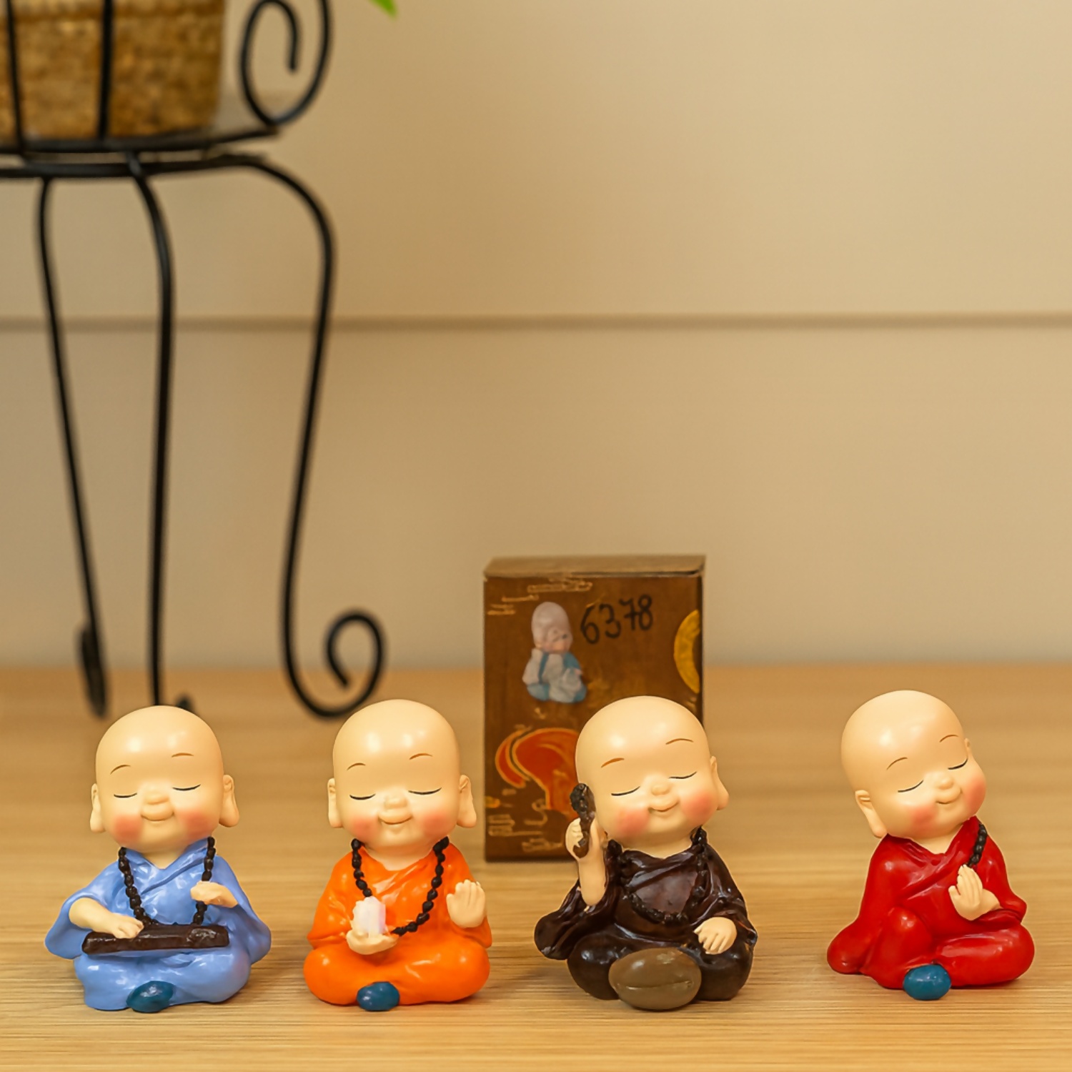 monk figurines set, mini buddha idols, resin monk statues, laughing buddha monks, meditation figurines, zen monk showpieces, spiritual décor items, car dashboard idols, office desk figurines, feng shui monks, home décor statues, return gift items, colorful monk idols, decorative figurines set