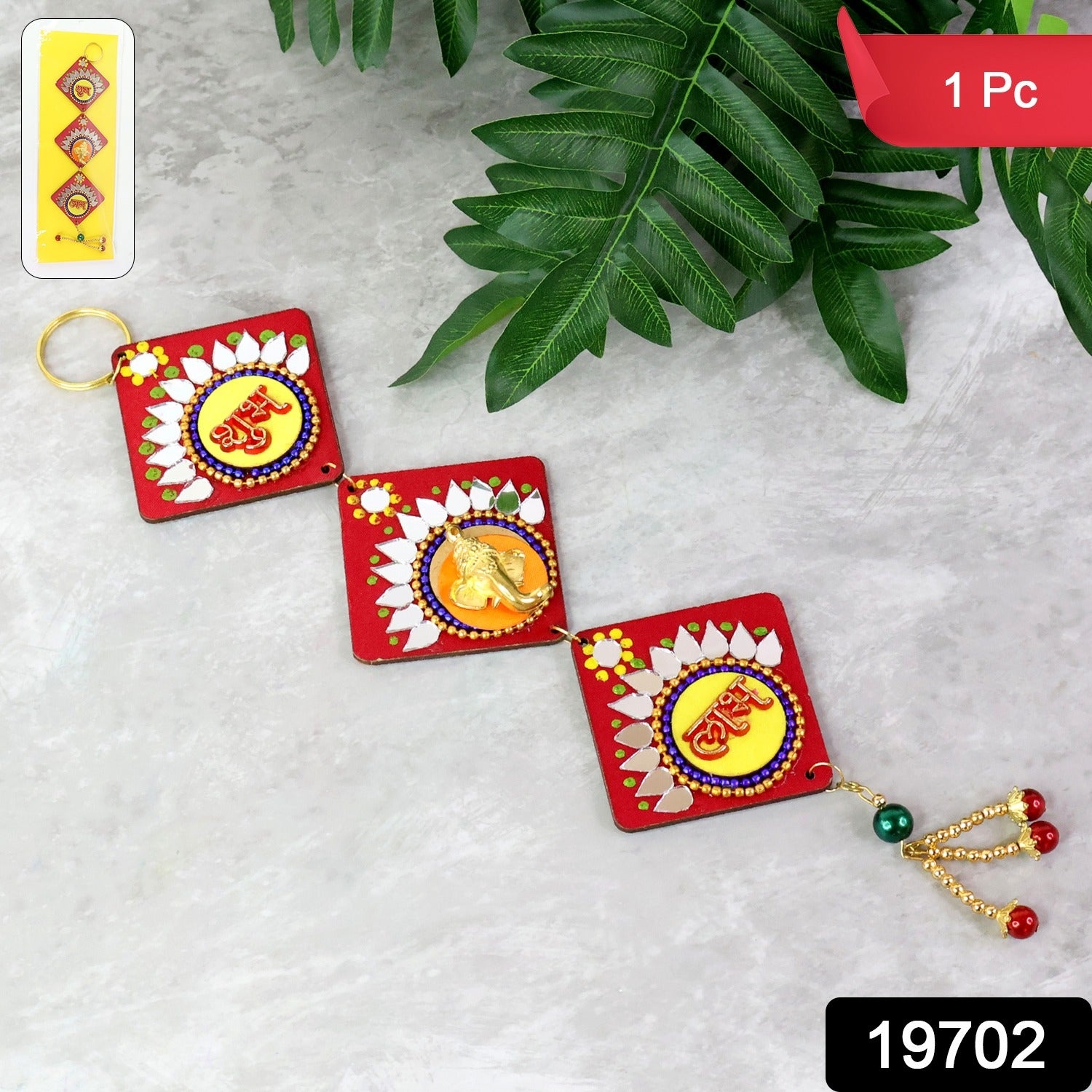 Decorative wall hanging, Toran, Door hanging, Festive wall decor, Religious decoration, Traditional decor, Pooja decor, Hanging ornament,Home decoration, Temple decoration, Entrance door hanging,Shubh Labh hanging, Ganesh wall hanging,Traditional square wall hanging,Spiritual wall hanging