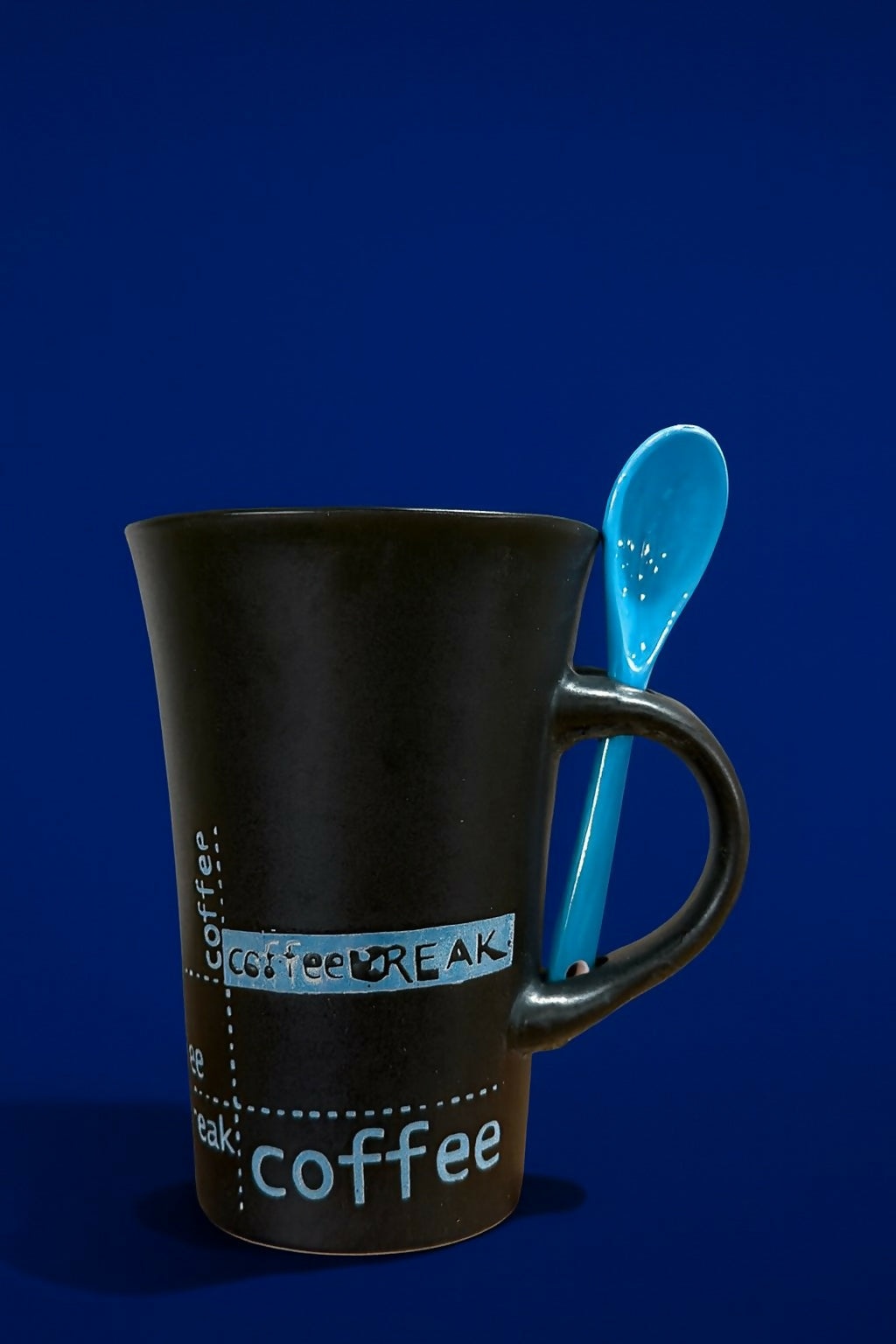 Upgrade your coffee time with this sleek black ceramic mug with blue spoon. Featuring a trendy “Coffee Break” print, this mug combines modern design with everyday functionality. The matching blue ceramic spoon fits conveniently into the handle slot, making it easy to stir sugar, milk, or cocoa. Made from premium ceramic, it is durable, heat-resistant, and safe for both microwave and dishwasher use. With a 350 ml capacity, it’s perfect for coffee, tea, milk, or hot chocolate. Ideal for home, office, or café use, this mug also makes a stylish gift for coffee and tea lovers.
