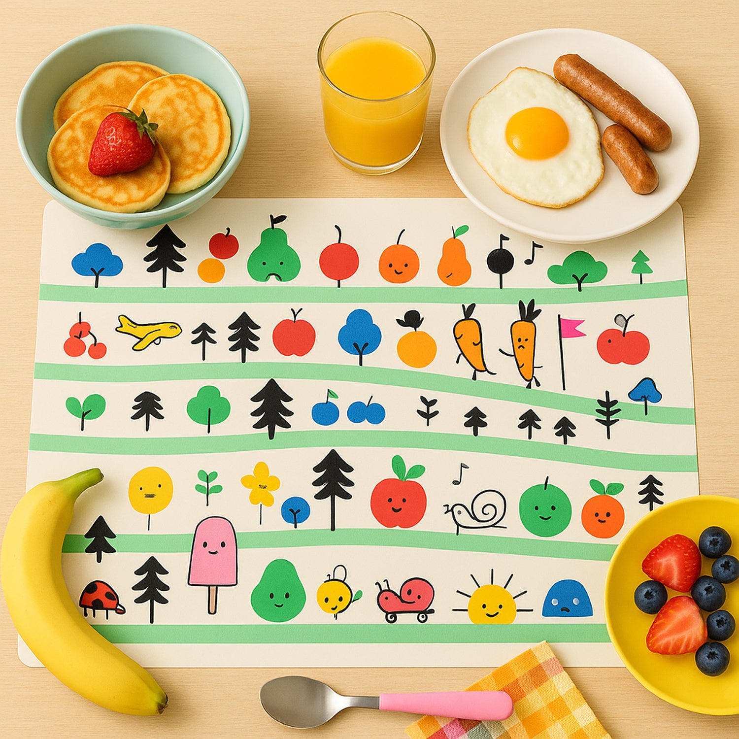 kids placemat, cartoon printed placemat, dining table mat for kids, fun placemat, colorful table mat, cute animal placemat, kids mealtime mat,kids dining, everyday meals, snack time, breakfast table,table protector, spill resistant placemat, washable mat, heat resistant placemat, easy clean table mat