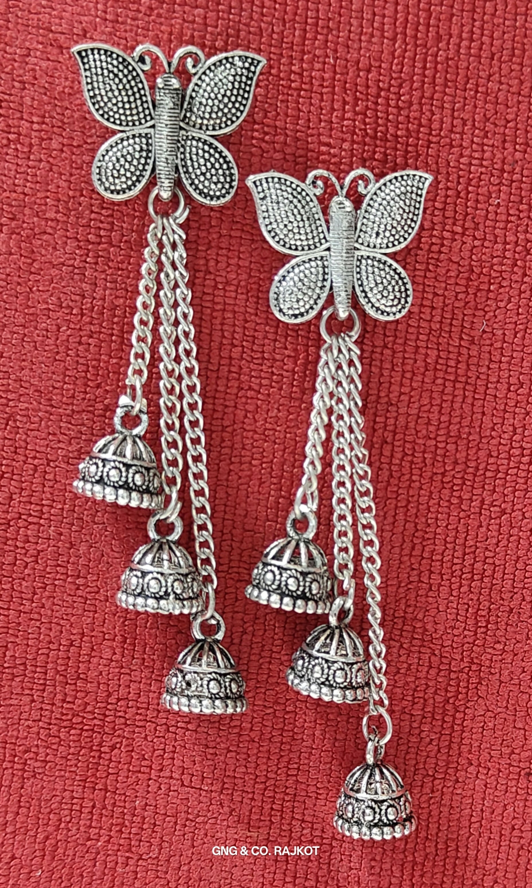 Add a touch of elegance and charm to your look with these beautifully crafted silver butterfly earrings. Featuring a delicate butterfly top and a sleek hanging chain, these earrings are perfect for both ethnic and modern outfits. The silver finish gives a premium shine, while the lightweight design ensures comfort for all-day wear.