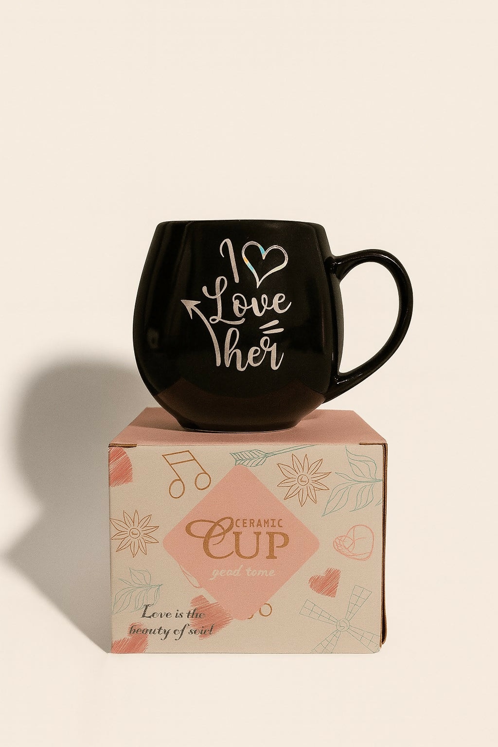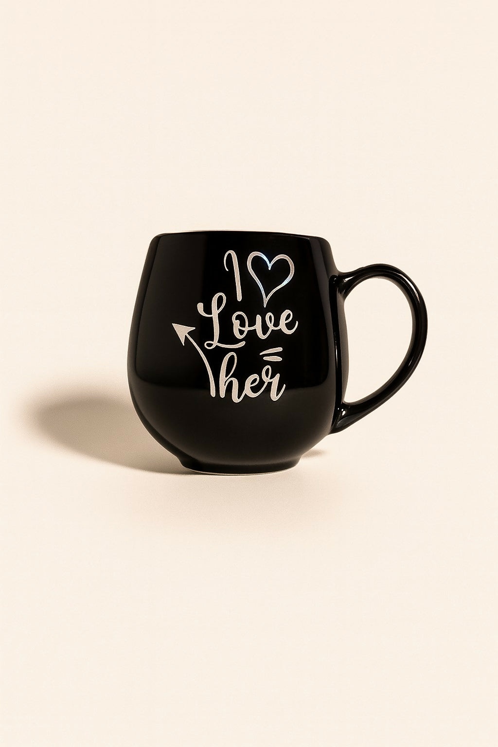 Make every sip a declaration of love with this black ceramic “I Love Her” Coffee Mug. Crafted from premium ceramic material, this mug features a bold black finish with a stylish white printed love message – “I ♥ Love Her” with an arrow design. Its ergonomic handle provides a comfortable grip, making it ideal for enjoying coffee, tea, hot chocolate, or any favorite beverage.