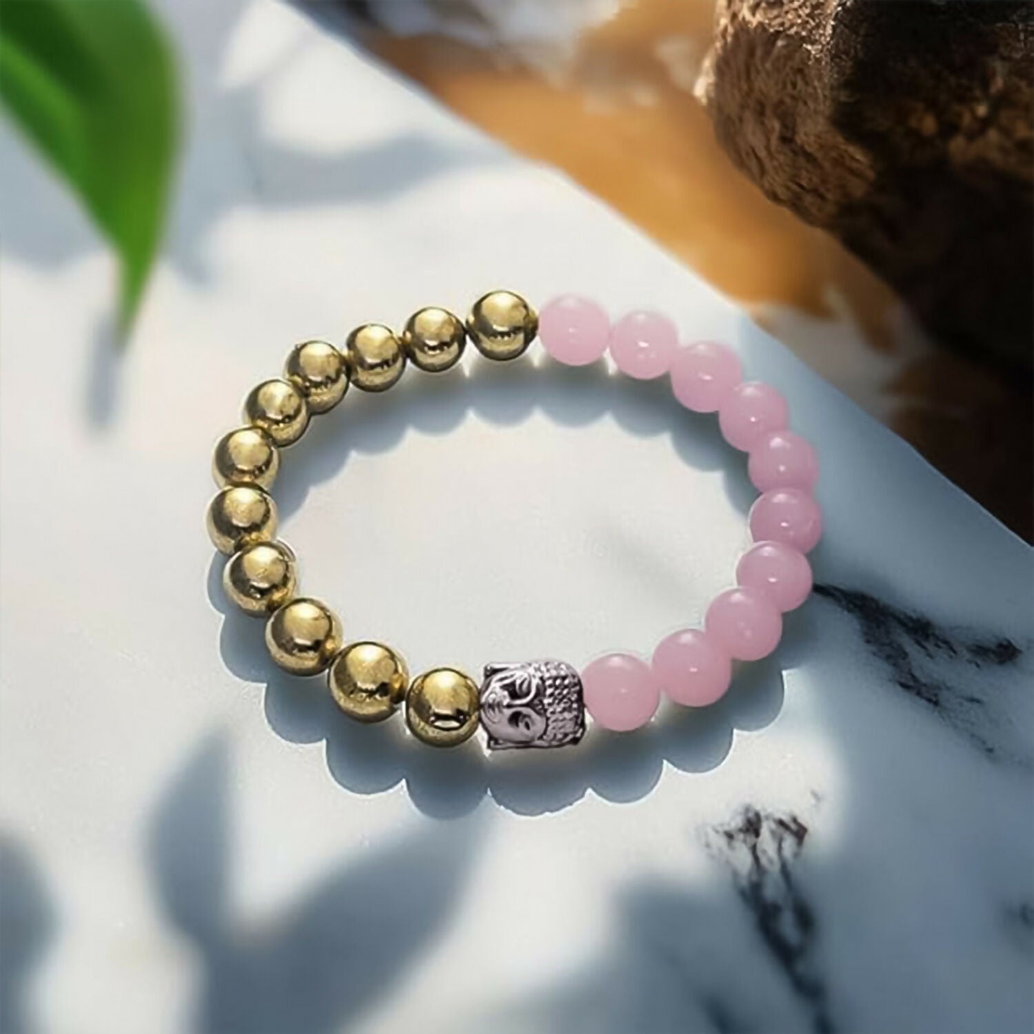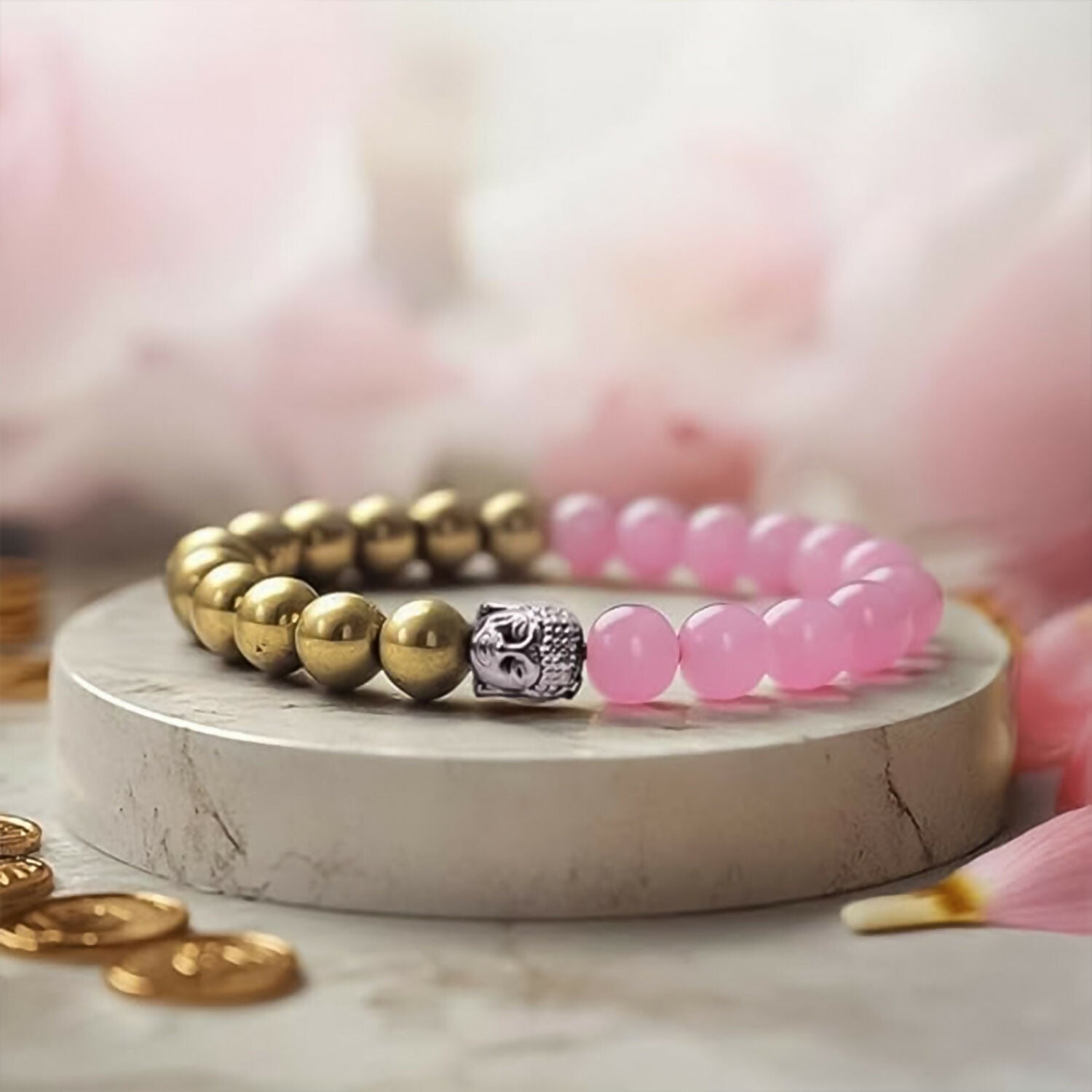 Dual-Tone Pink & Gold Beaded Bracelet in Elegant Display Case