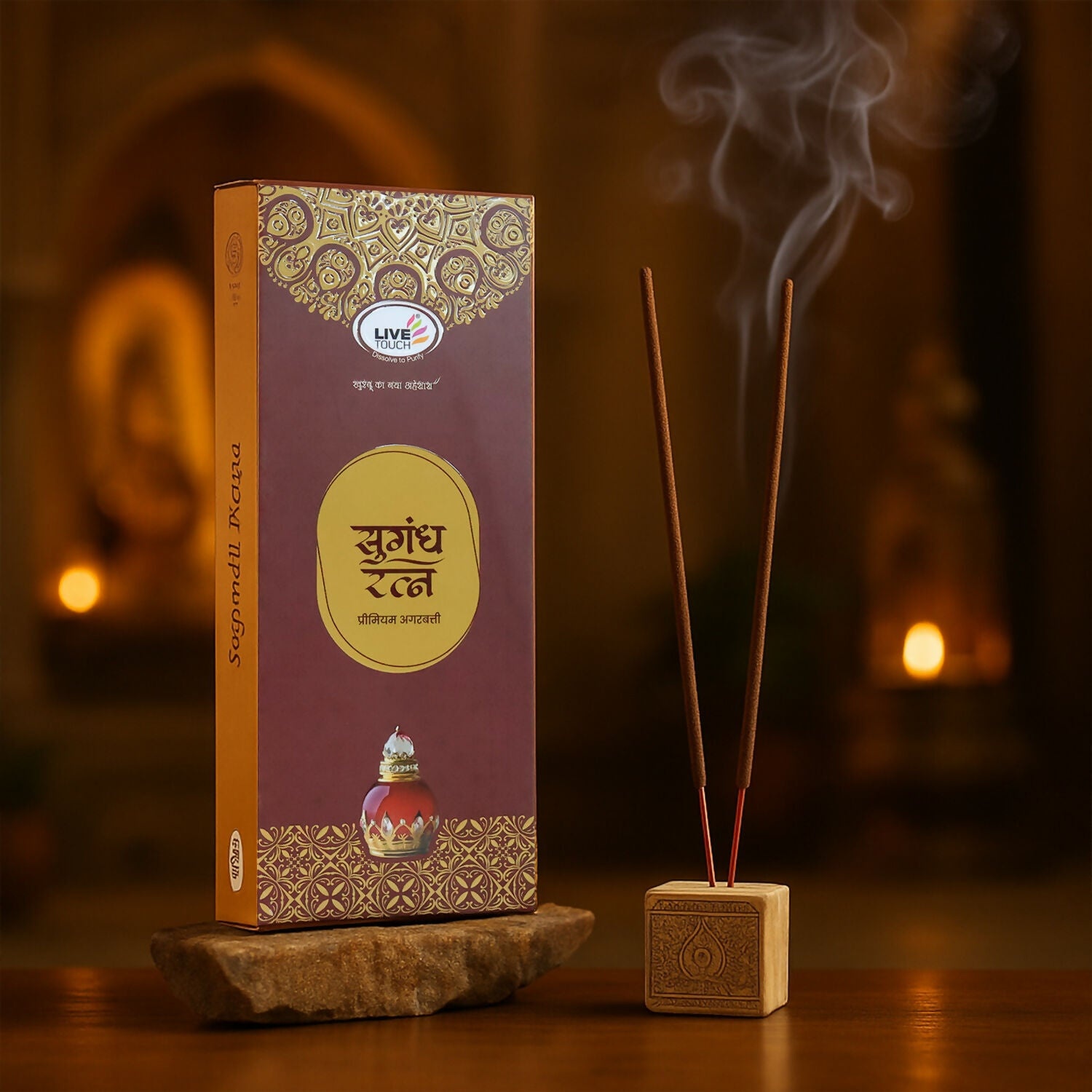 Live Touch Sugandh Ratna Premium Agarbatti – Long-Lasting Fragrance Incense Sticks for Puja, Meditation & Home Aromatherapy (250g Box Pack)