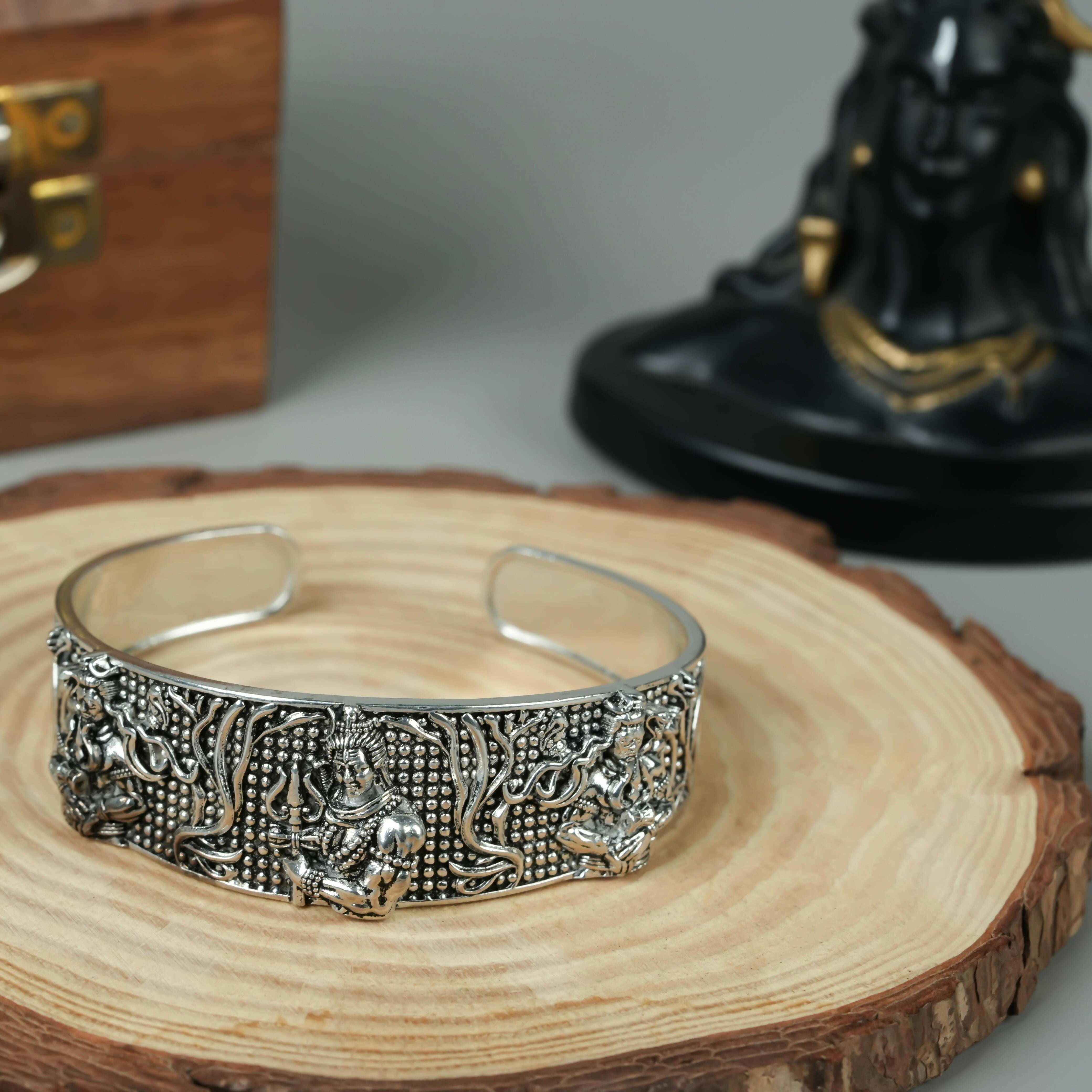 Antique Silver-Tone Adjustable Lord Shiva Carved Metal Bracelet – Unisex Spiritual Cuff
