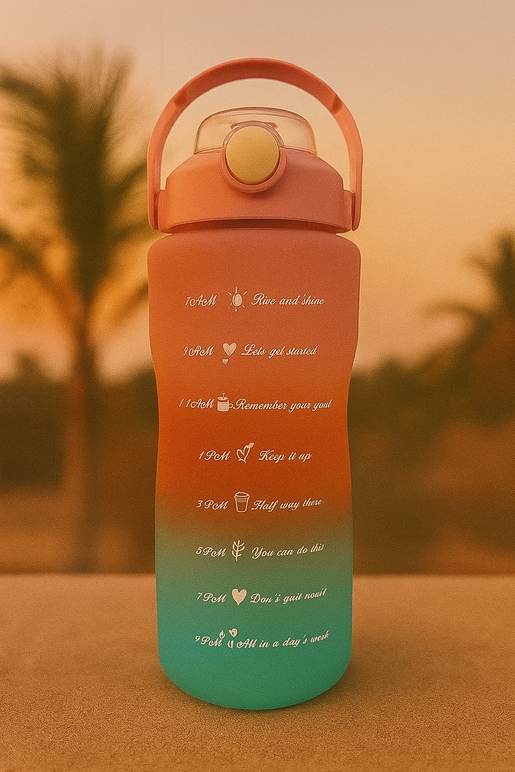 coral gradient water bottle, motivational water bottle set, BPA free water bottle, time marked bottle, ombre water bottle, hydration tracker, leakproof bottle for gym, reusable water bottle, inspirational water bottles, water bottle with quotes, pastel bottle set, office hydration bottle, colorful drink bottle set