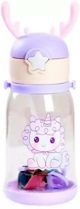 unicorn kids water bottle, BPA-free toddler bottle, cute cartoon water bottle, pastel purple bottle for girls, kids bottle with straw and strap, antler lid sipper, leakproof kids bottle, school water bottle for girls, baby drinking bottle, gift for toddler girls