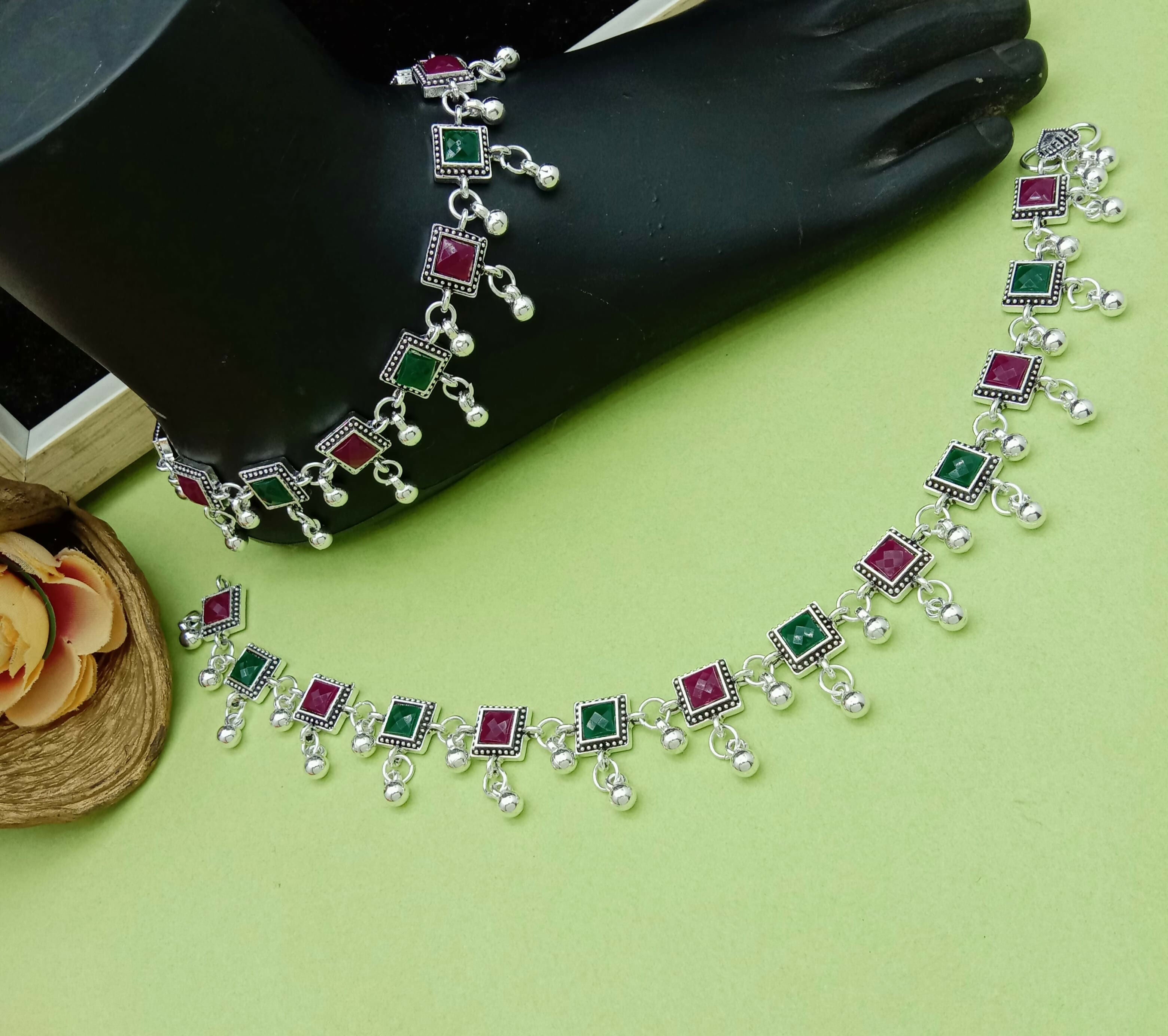 Classic Indian Payal with Colorful Stone Charms
