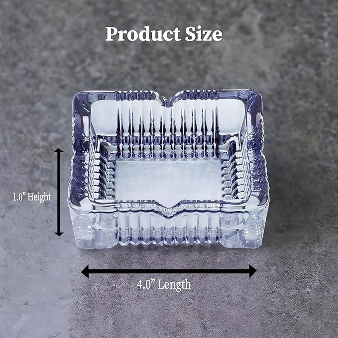 Premium Heavy Duty Crystal Glass Ashtray for Home, Office, or Outdoor Use – Classic Square Design with Deep Grooves and Elegant Cut Pattern – Ideal Gift for Smokers, Bars, and Lounge Decor