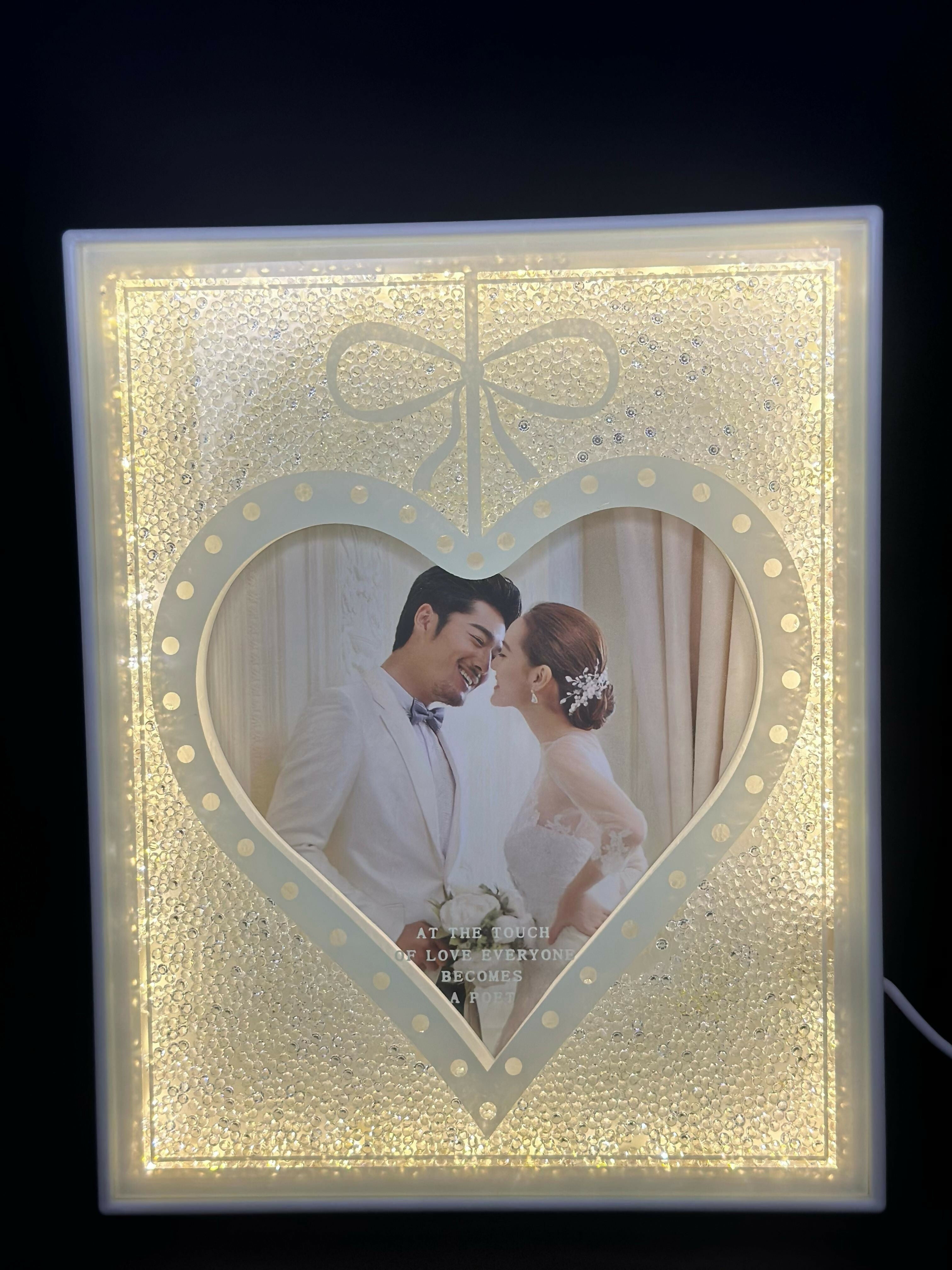 Personalized LED Photo Frame with Heart Design and Sparkling Crystal Border – Romantic Light-Up Table Frame for Couples with Quote 'At the Touch of Love Everyone Becomes a Poet' – Perfect Gift for Weddings, Anniversaries & Valentine's Day