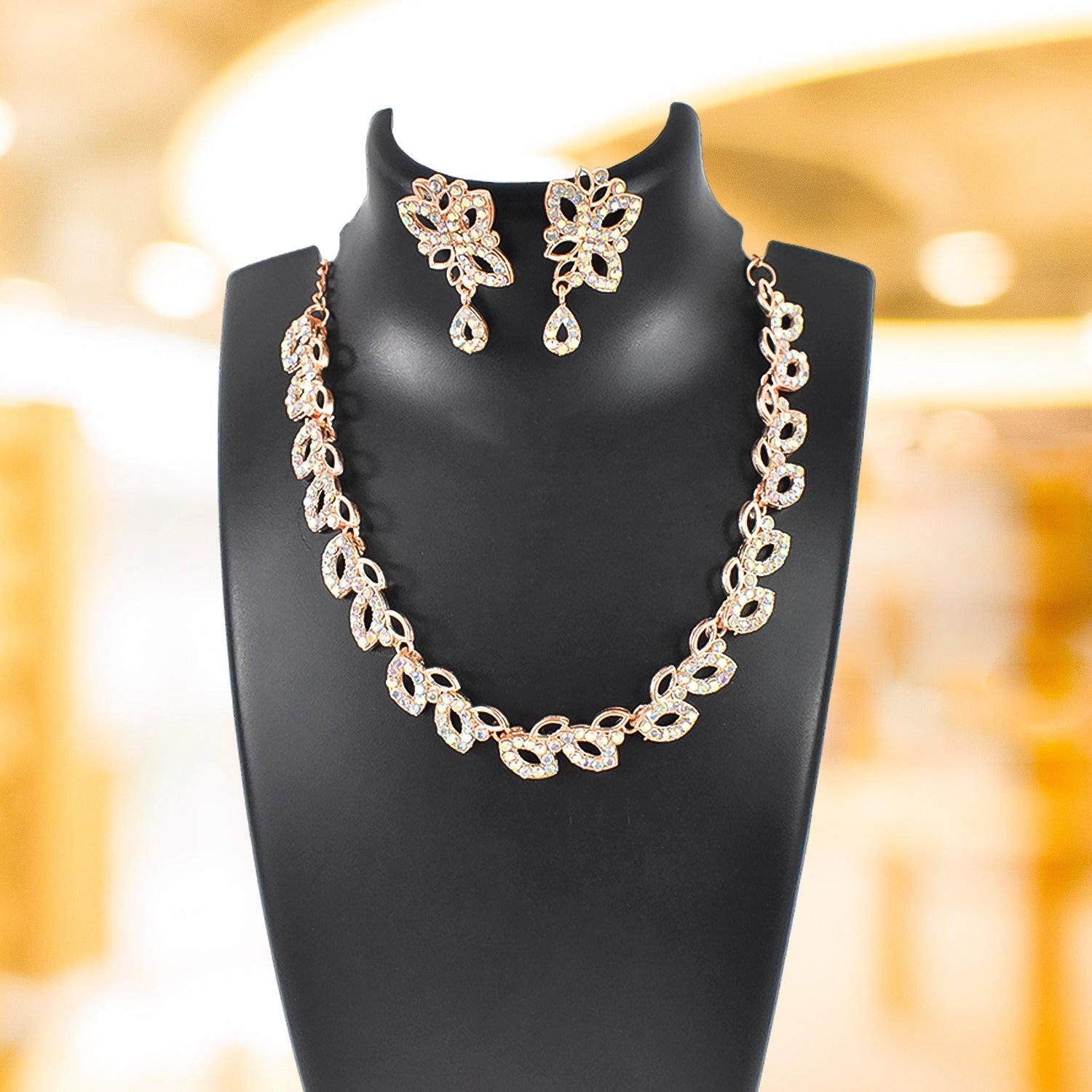 • What You Get:- 1 N Rhodium-Plated American Diamond Studded Floral & Paisley Shaped Necklace With 2 N (1 pair) Earrings Jewellery Set.