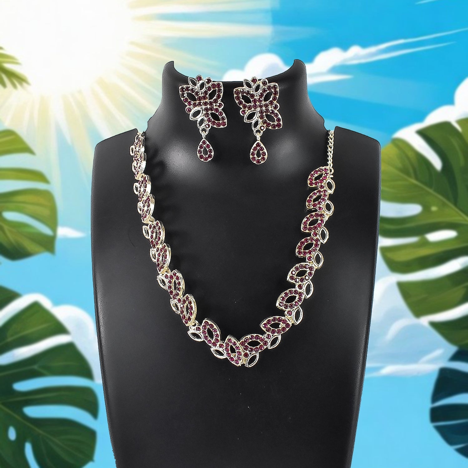 American Diamond Studded Floral Shaped Necklace With Earrings