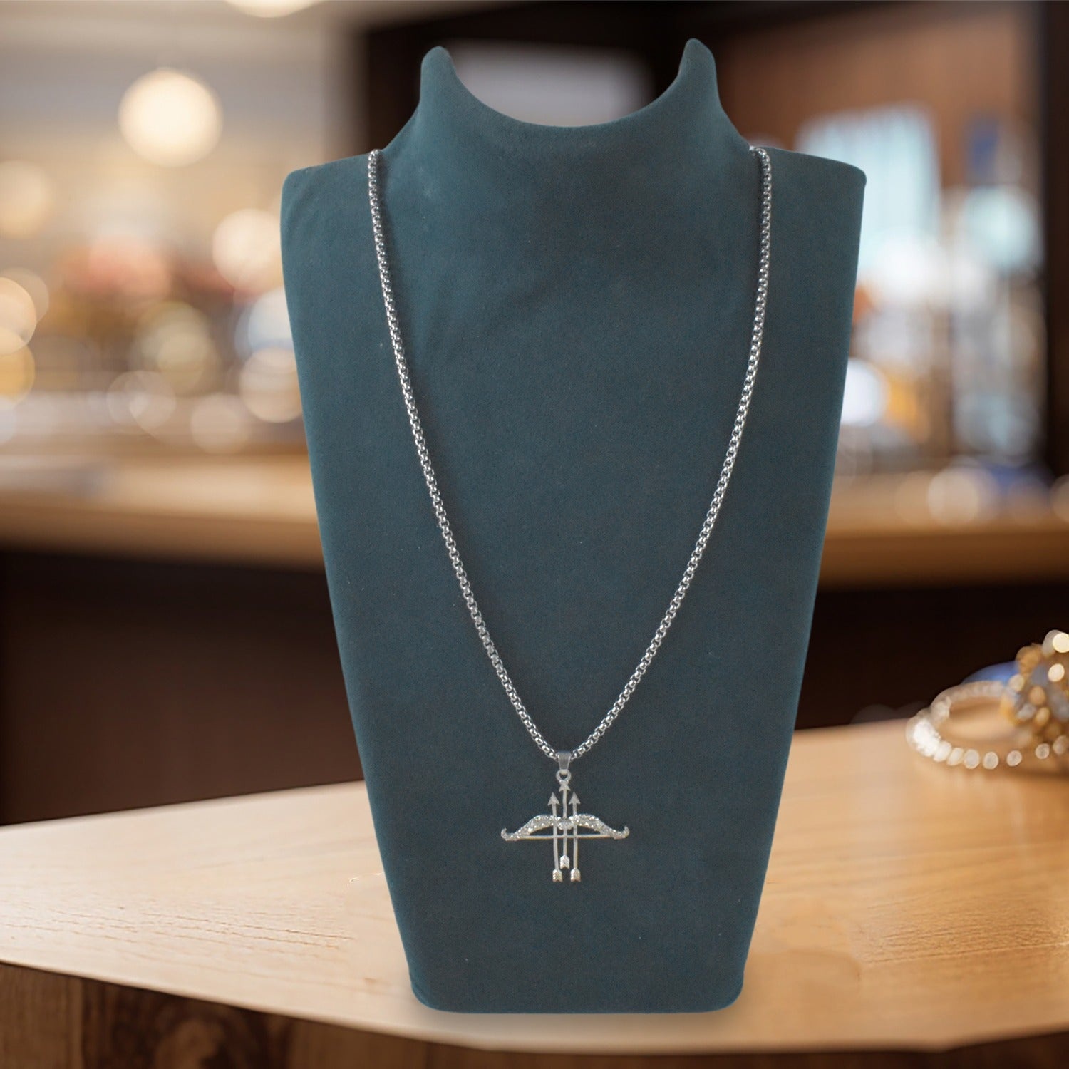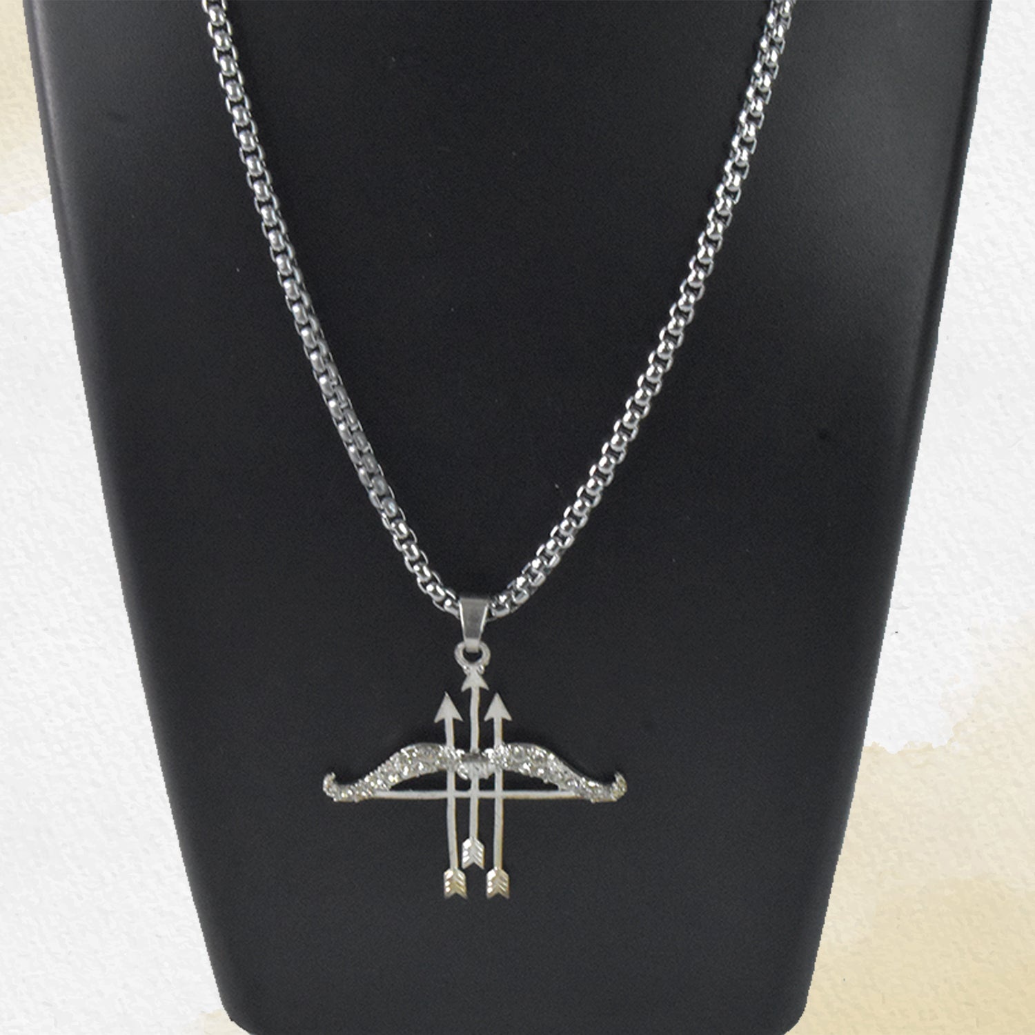 • Silver Lord Khatu Shyam Teen Baan Locket Pendant Chain Necklace Religious Jewellery For Men Women