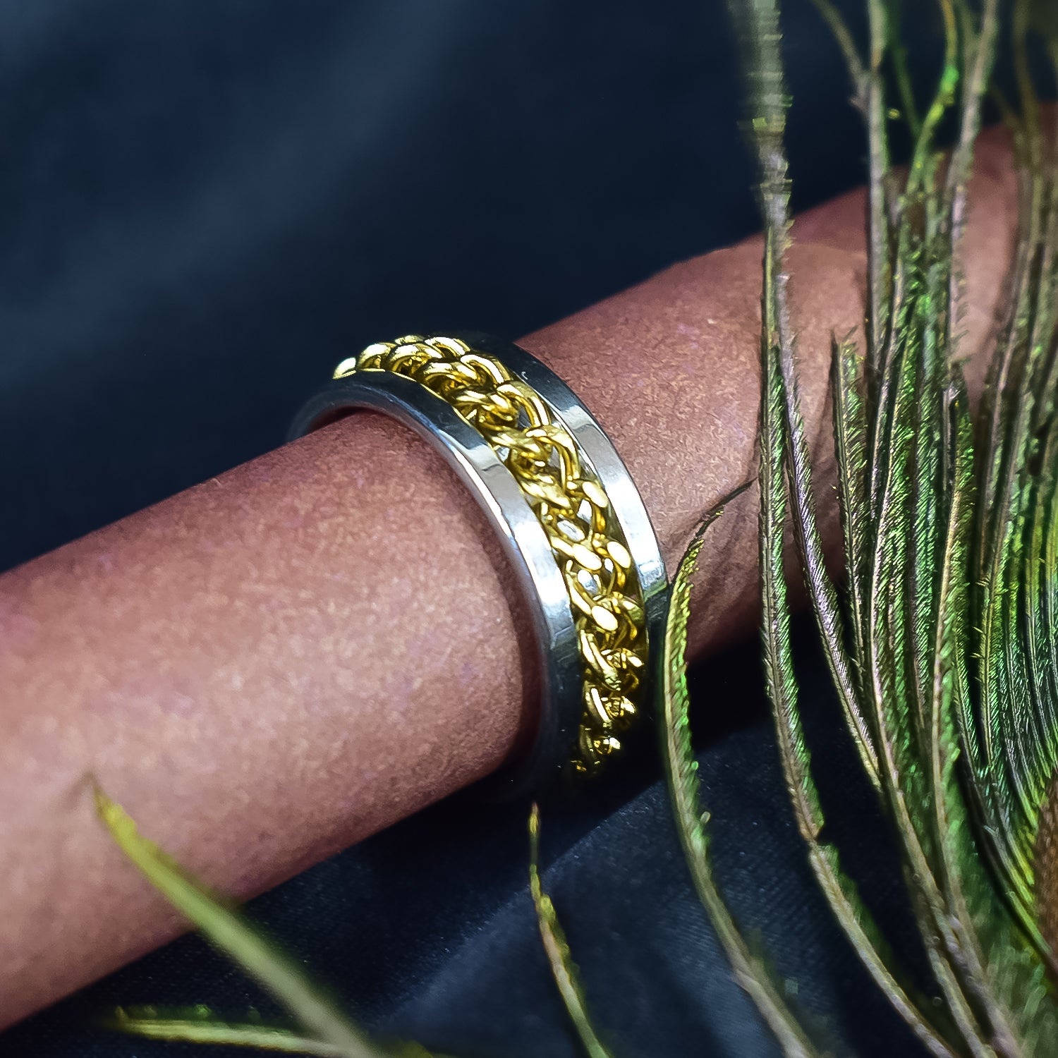 • A rough and Tough style ring where a chain pattern is running in the middle of the width-giving a manly look.