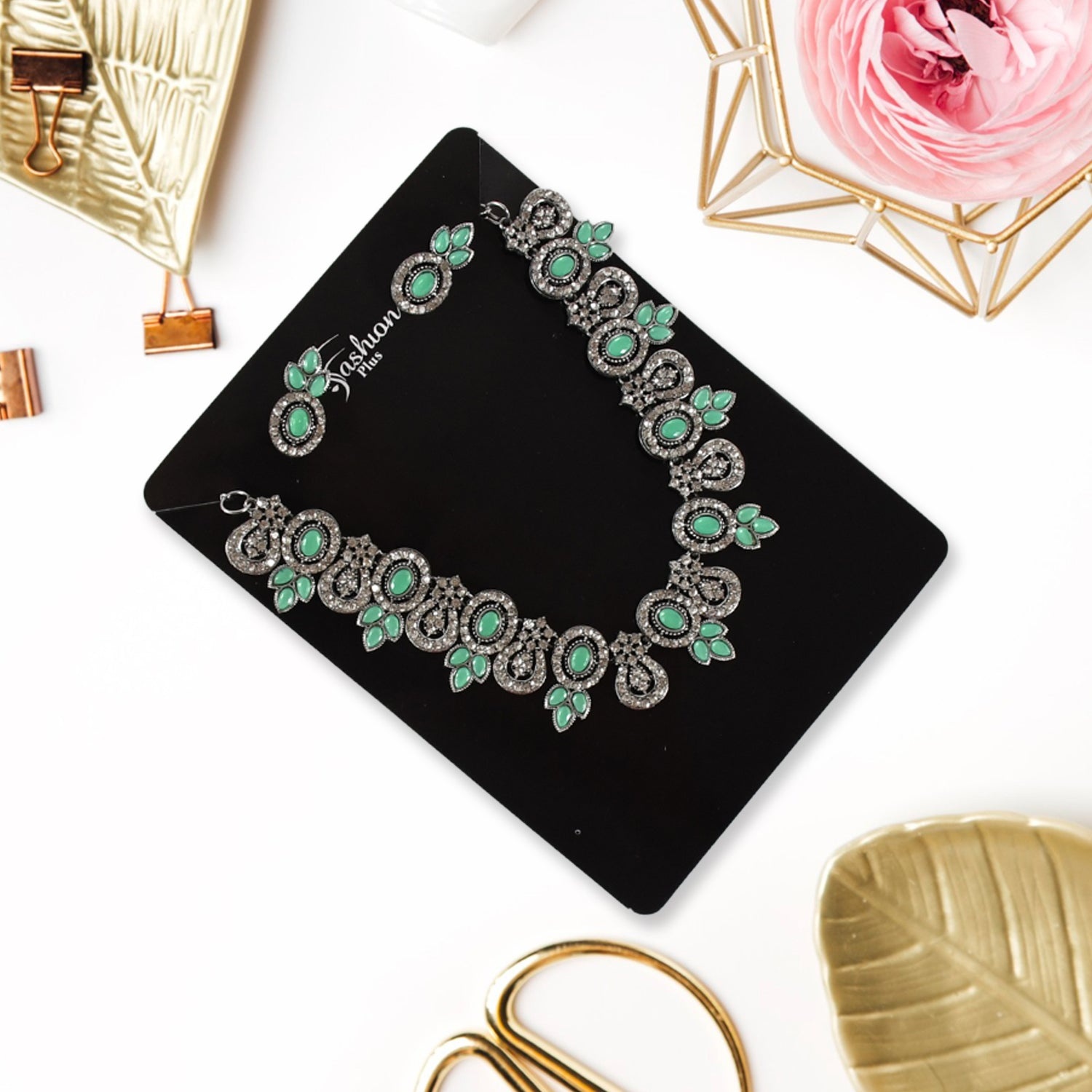 • The necklace and matching earrings are crafted to complement each other, creating a harmonious and elegant look.