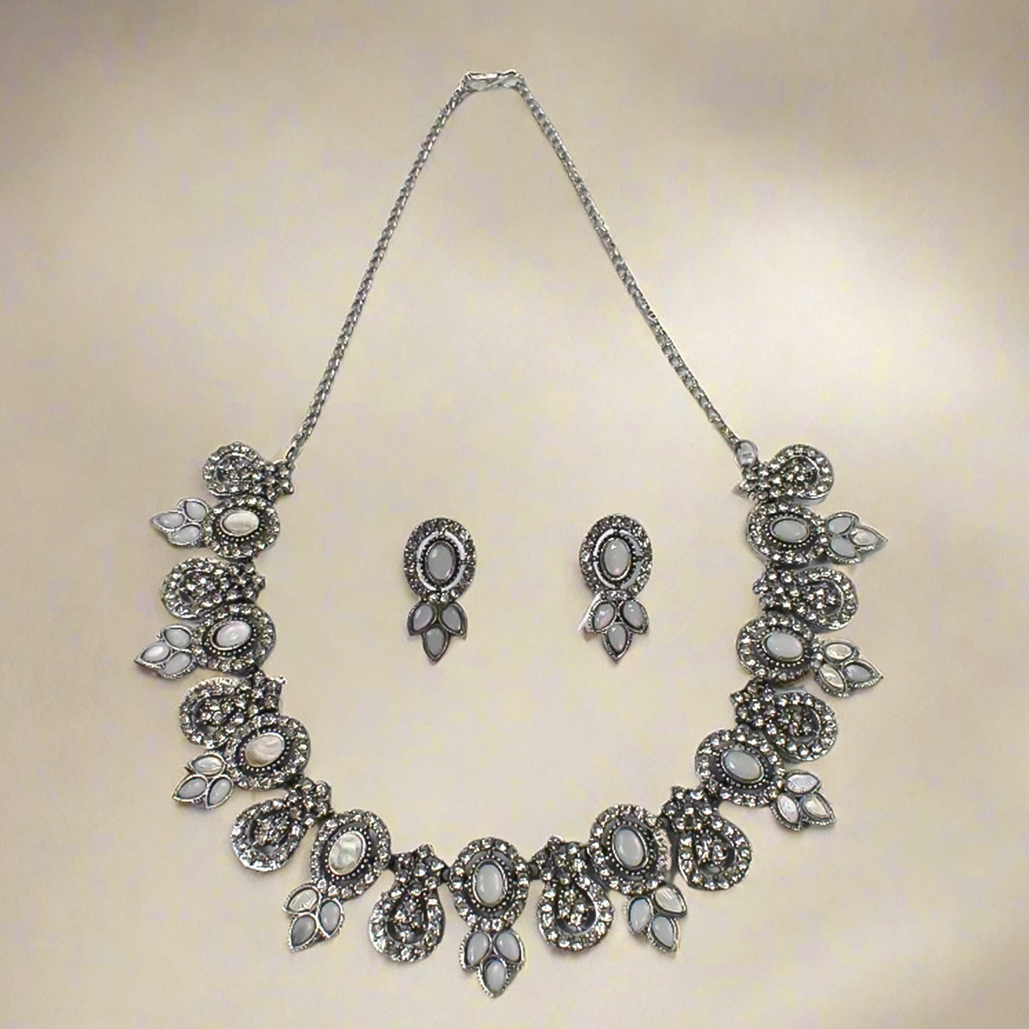 • The necklace and matching earrings are crafted to complement each other, creating a harmonious and elegant look.