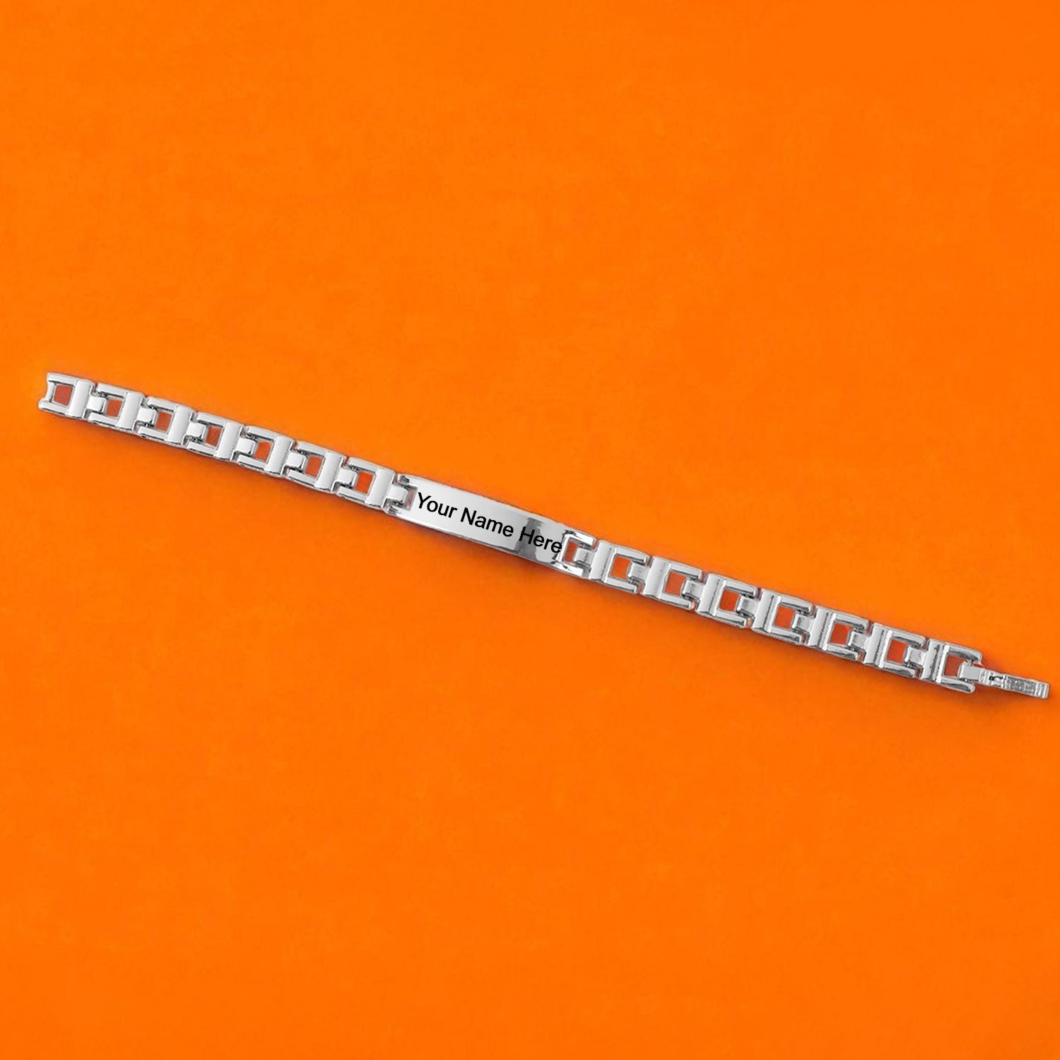 Customized Silver Link Bracelet for Men with Name Engraving – Elegant Personalized Stainless Steel for Brother, Bhaiya, Husband – Stylish Reusable Raksha Bandhan Gift – 1 Pc