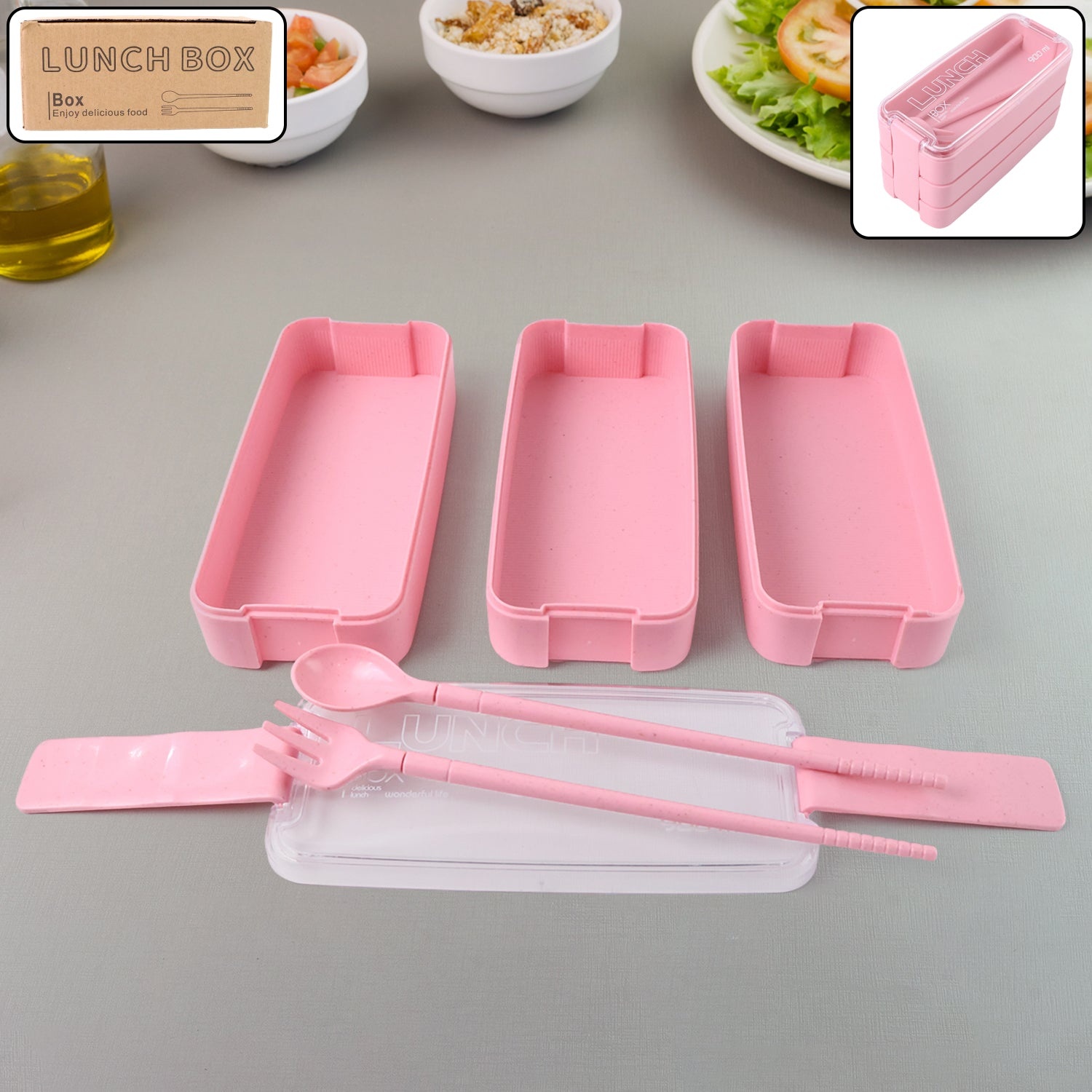 Eco-Friendly 3-Layer Stackable Lunch Box Set with Cutlery
