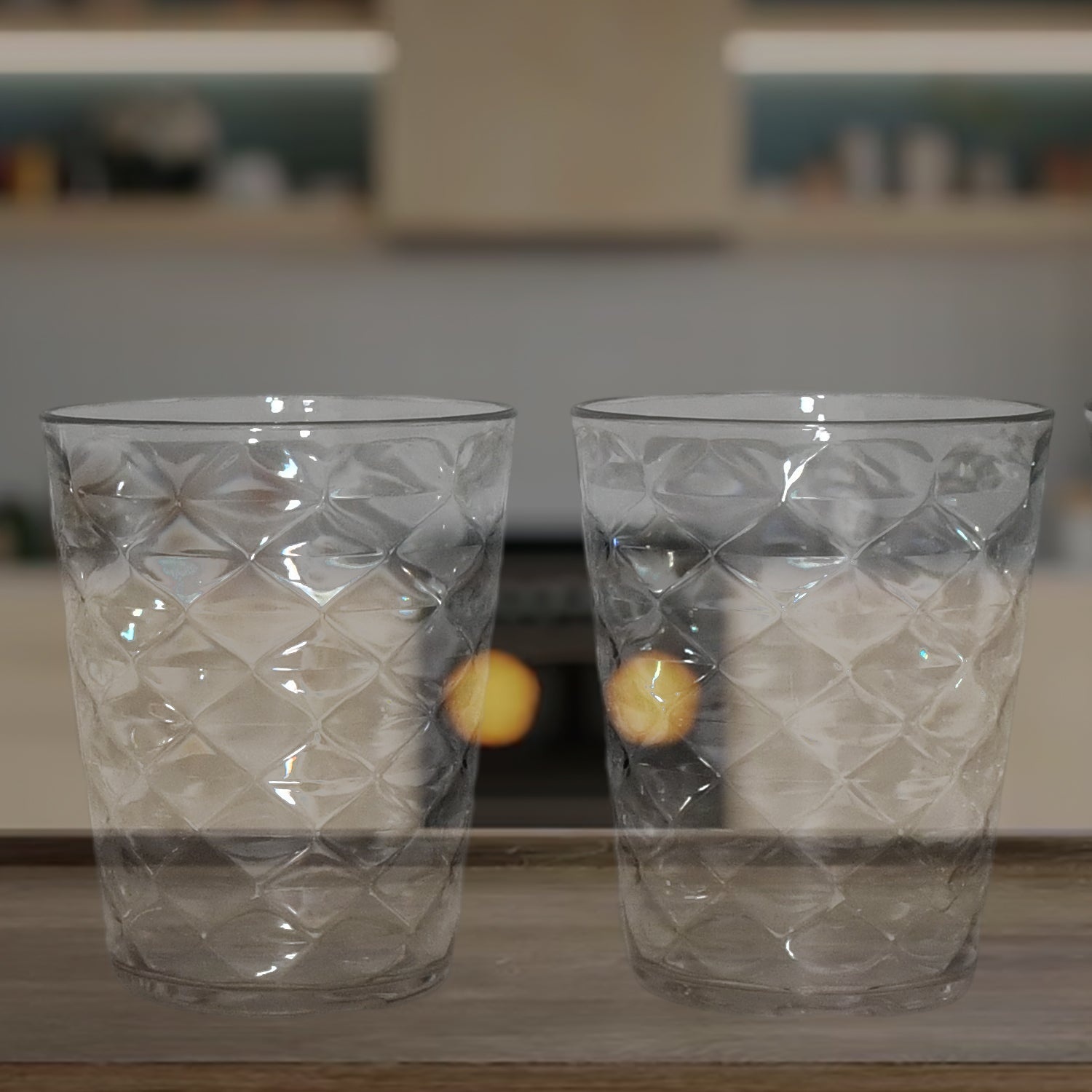 Serve your favorite beverages in style with this uniquely designed Pyramid Plastic Glass – 300 ML, crafted for both elegance and everyday functionality. With its crystal-clear body and textured pyramid surface, this glass brings a premium feel while being incredibly practical for daily use.