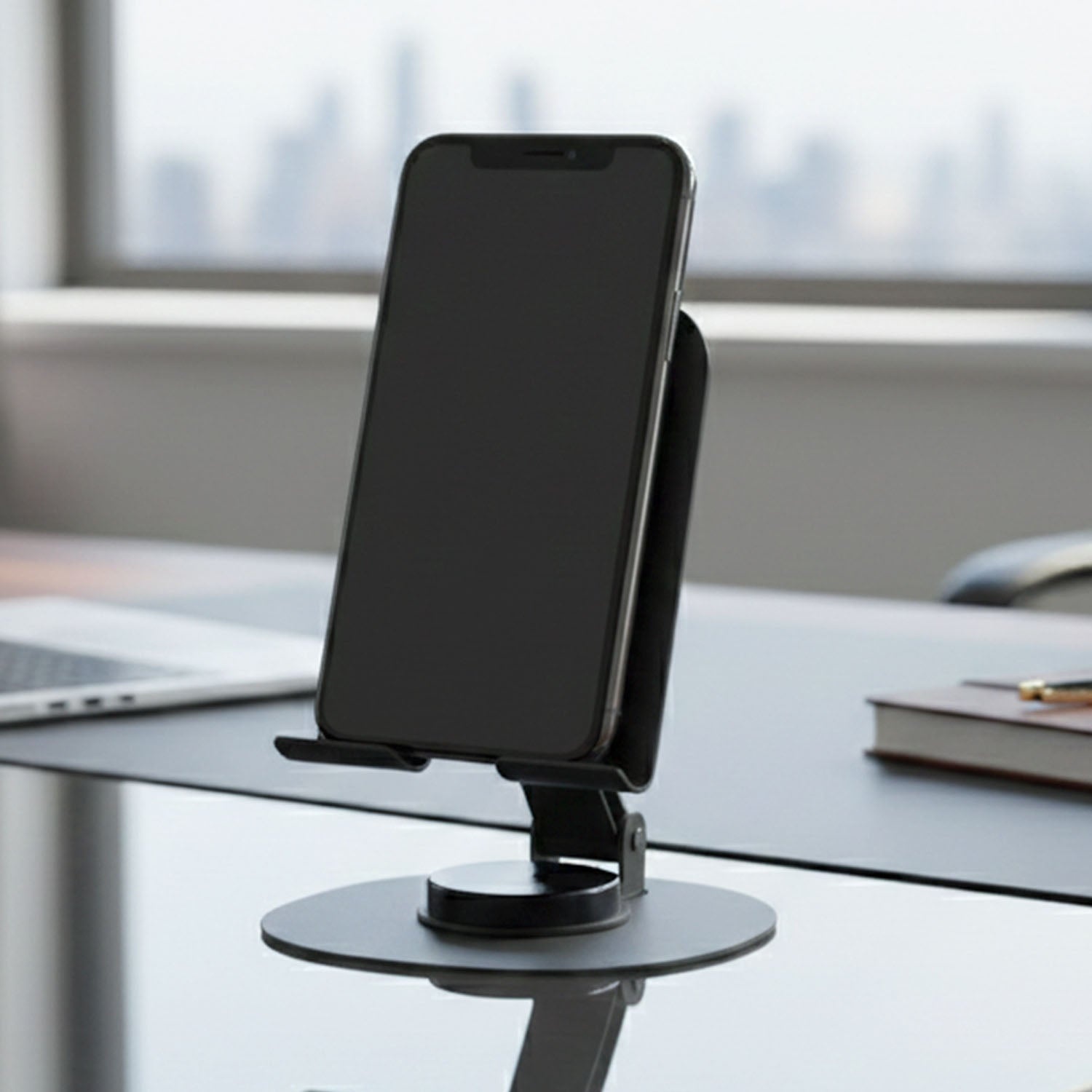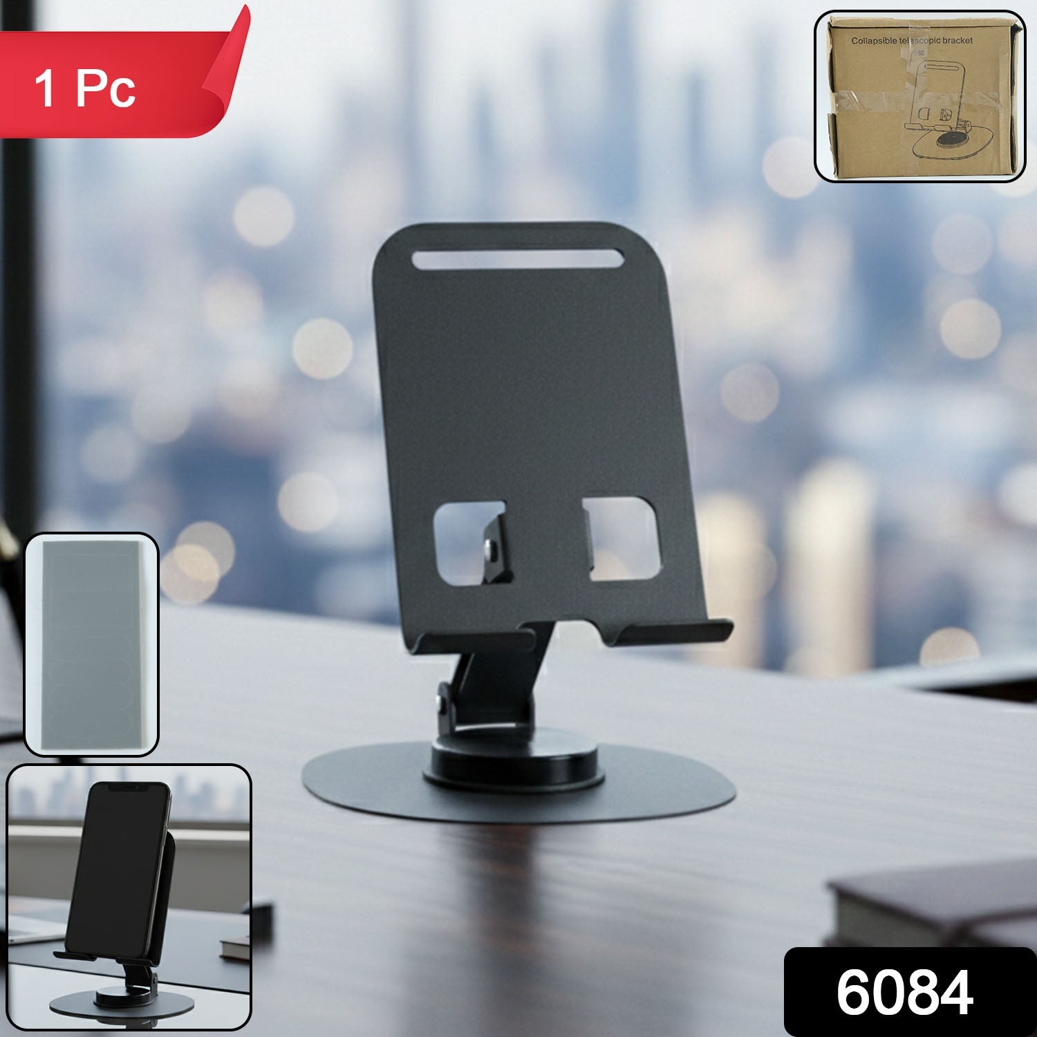 Foldable Metal Mobile Stand 360° Rotatable Mobile Stand Multiple Height & Angle Adjustments, Stable Metallic Round Base Weight of Any Phone (1 Pc)