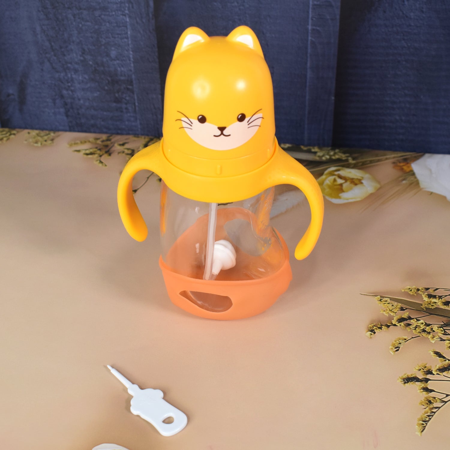 Glass Baby Feeding Bottle with Plastic Handles & Silicone Straw Leakproof, BPA Free & Non-Toxic for Baby | Toddlers, Water Bottle, Milk Bottle for New Born / Infants (300 ML / 1 Pc)