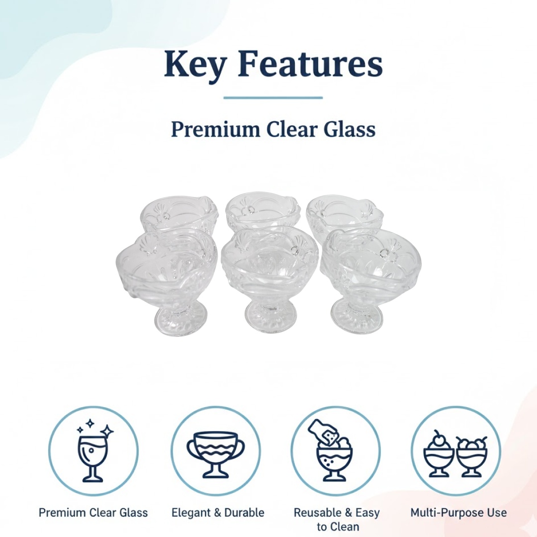 Glass Ice-Cream Cup Set, Home & Kitchen Serving or Dessert Cup for Sundae, Sweets, Snacks, Fruit, Pudding, Nuts or Dip, Serving Bowls, Pure Glass  (6 Pcs Set)