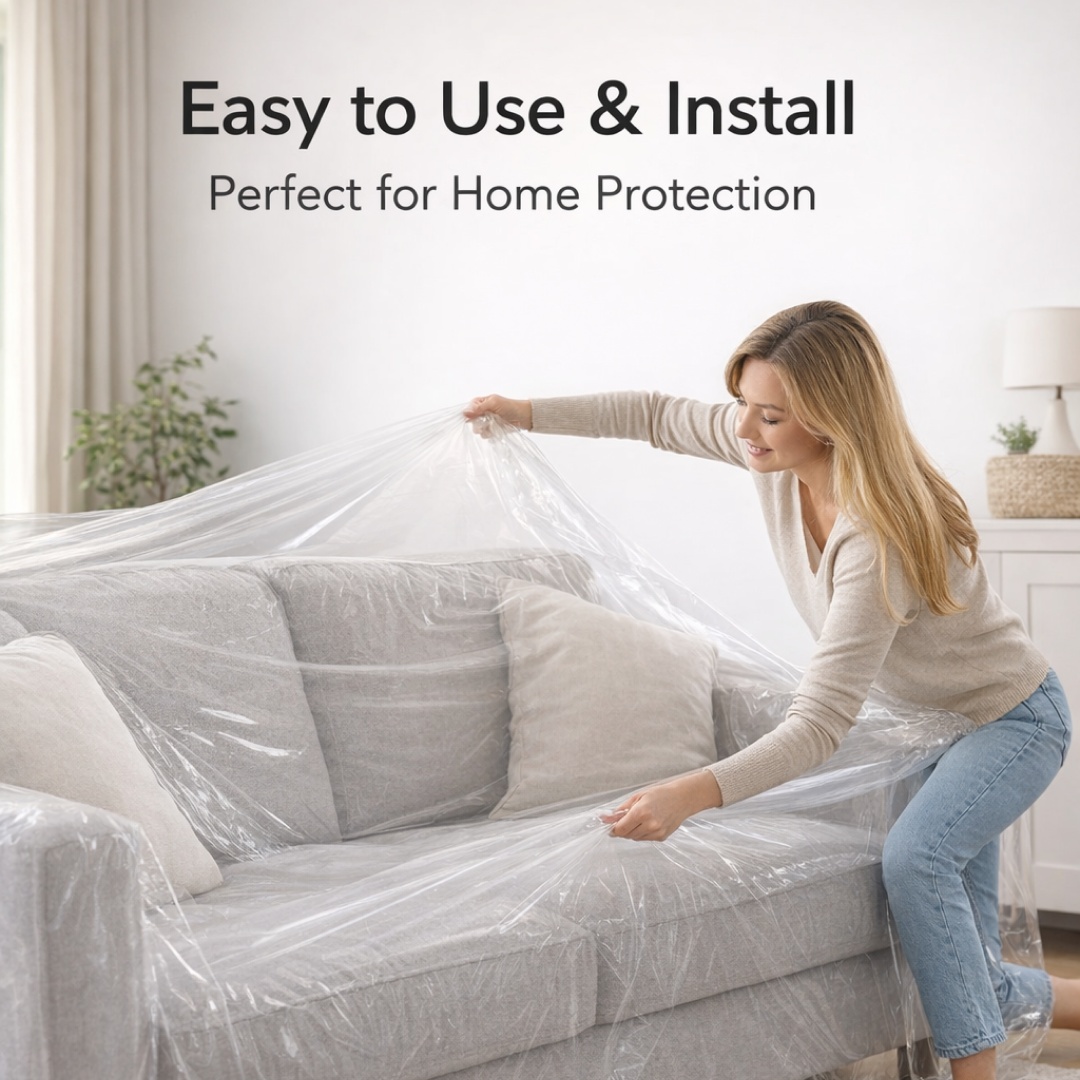 Home Thick Disposable Dust Proof Plastic Furniture Covers Transparent Waterproof Furniture Protector Dust Cover for Home Packaging Protect Your Chair Sofa, Furniture, Fridge, Outdoor Space etc (1 Pc / Big)