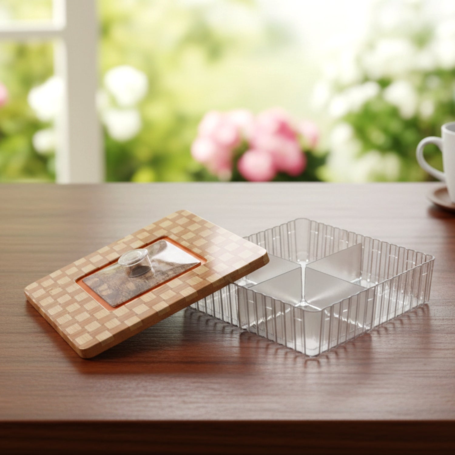 Plastic Multipurpose Dry Fruit Chocolates Mouth Freshener Sweet Box Dry Fruit Box, Dry Food Box, Mukhvasdani Corporate Gift with 4 Partition / Compartment containers for Storage (1 Pc)
