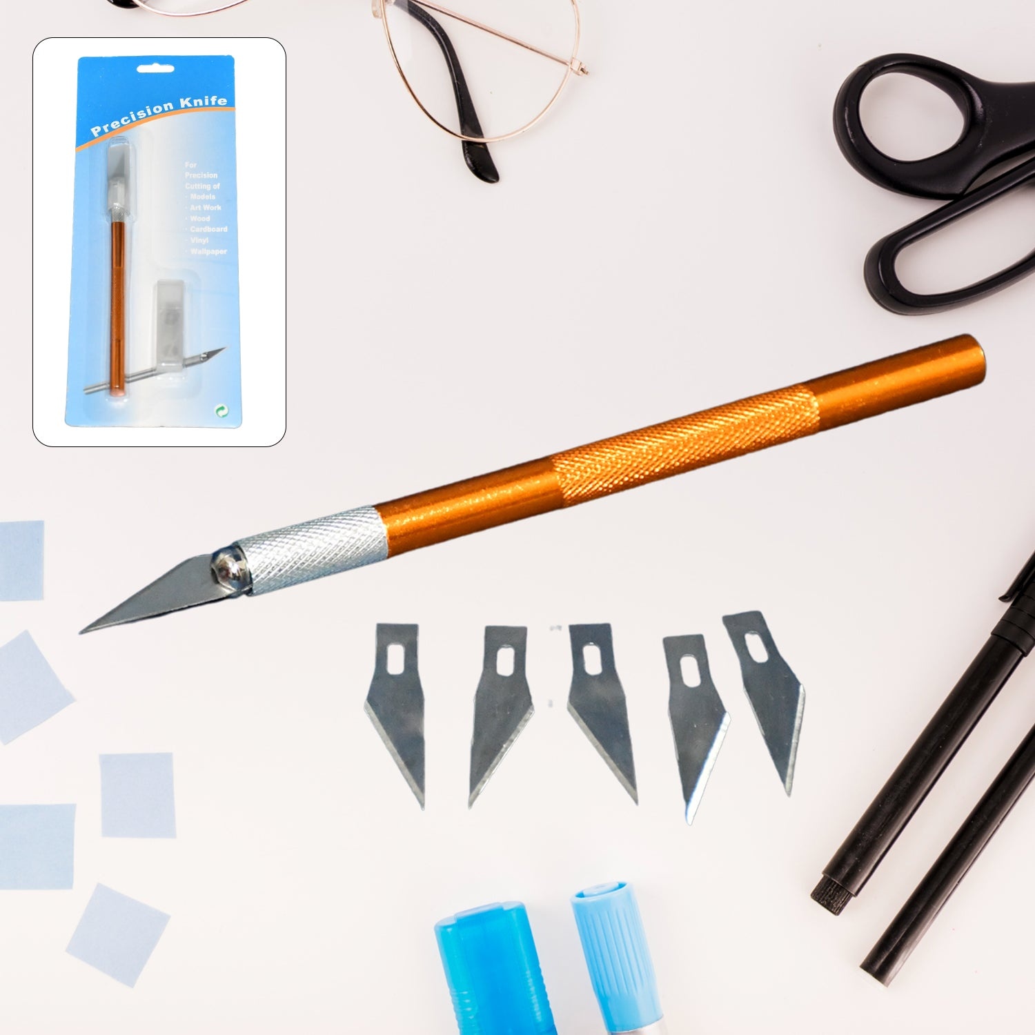 - 【CONVENIENT & PORTABLE】: Cross chuck design, fastened blade clamping, convenient to use, easy to replace hobby knife blades. Craft knife cap to prevent scratches. Light and handy, easy to carry.