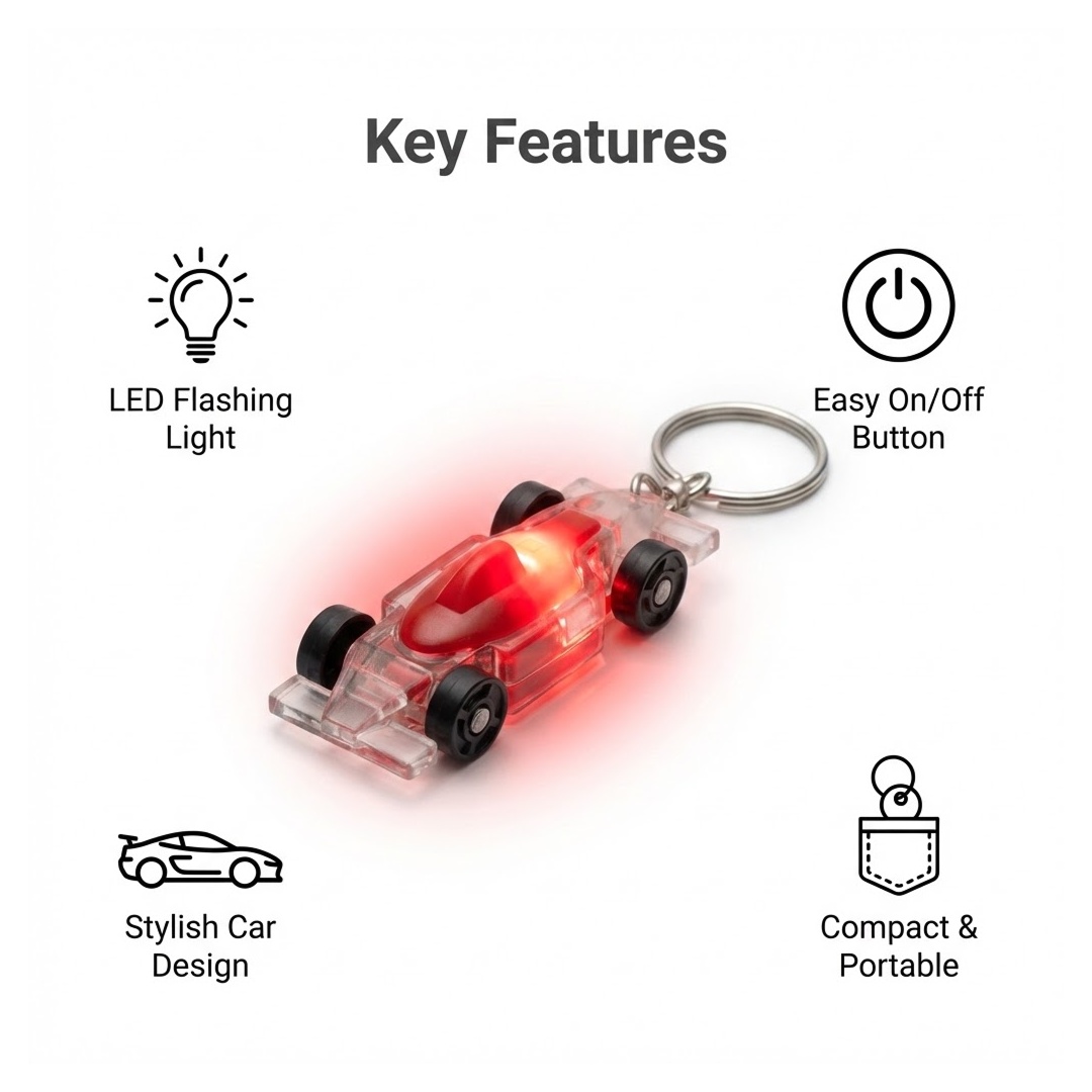 Cars Shape Keychain with On / Off Button LED Flashing Light for Car Bike Men Women Gift Keyring LED Race Car Key Chain Ring Mini Race Car Party Torch Keychain Race Car Party Favors for Kids Boys Birthday Supplies (1 Pc)