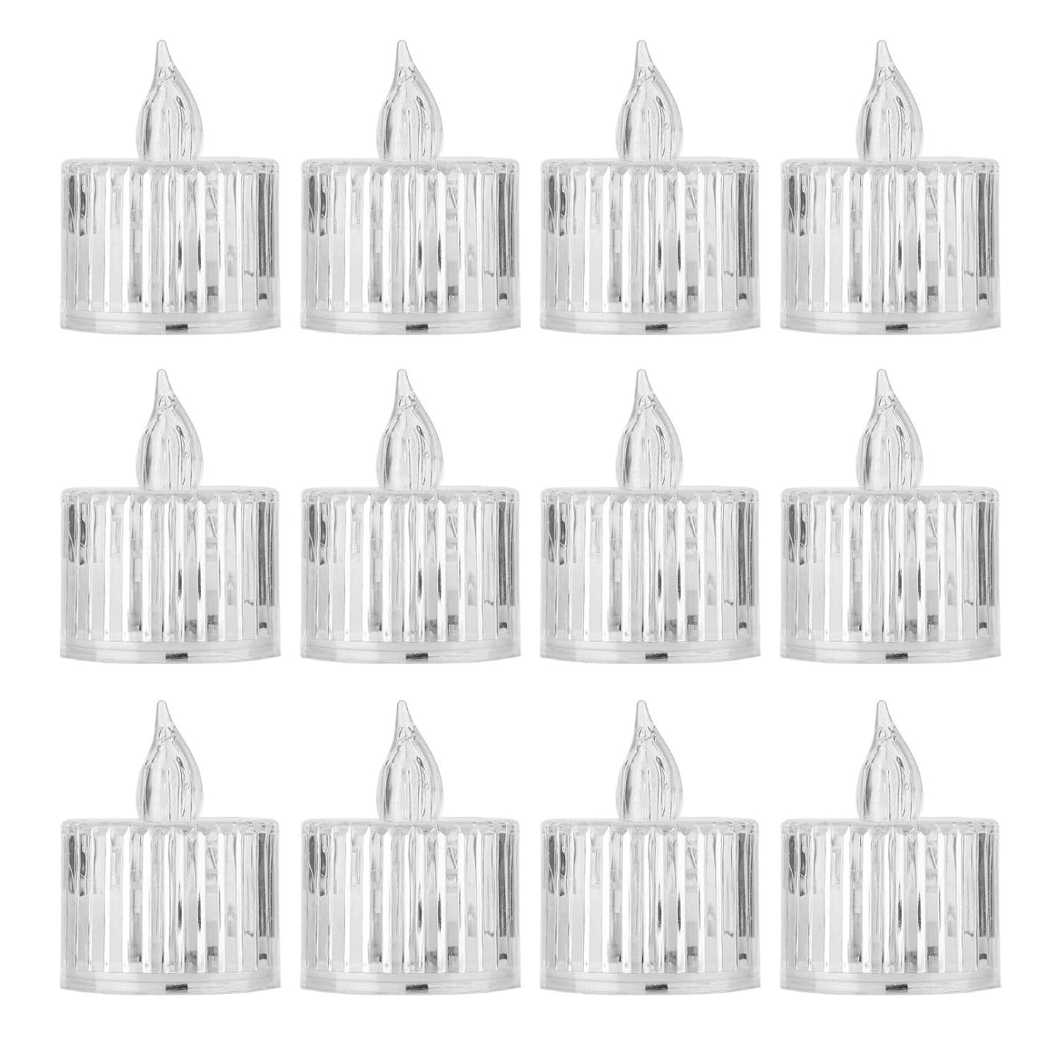 12 Pcs Flameless and Smokeless Decorative Acrylic Candles Transparent Led Tea Light Candle for Gifting, House, Diwali, Christmas, Festival, Events Decor Candles, Diwali Item