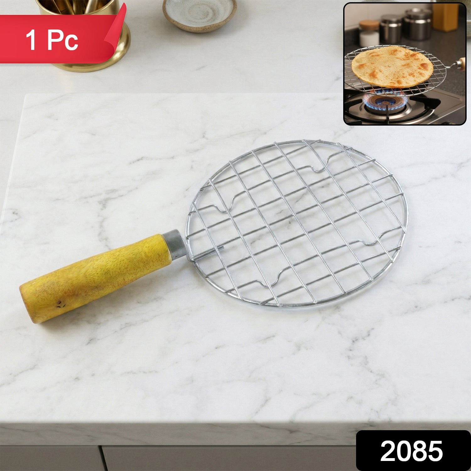 Kitchen Round Stainless Steel Roaster Papad Jali, Barbecue Grill with Wooden Handle